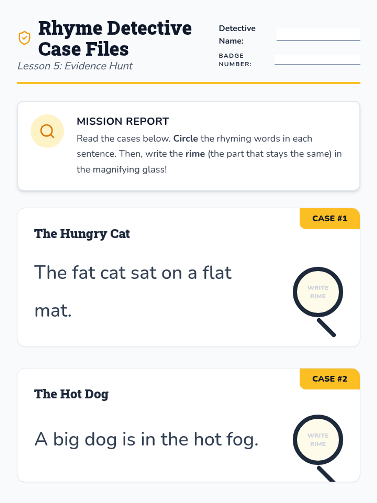 Students apply their word family knowledge to read short, decodable texts or poems. They highlight or circle the word family chunks within the sentences to reinforce visual recognition of the patterns.