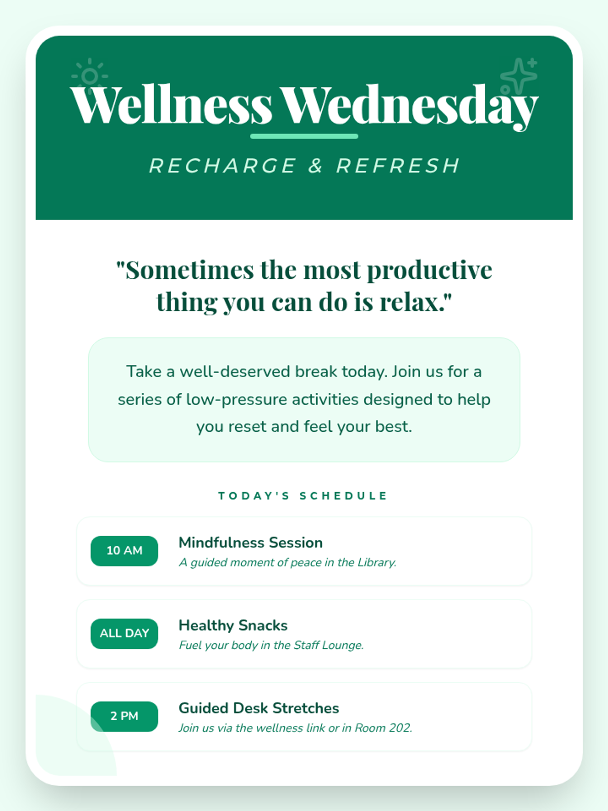 A collection of resources designed to help staff members prioritize their mental health, manage stress, and build a culture of wellness in the workplace.