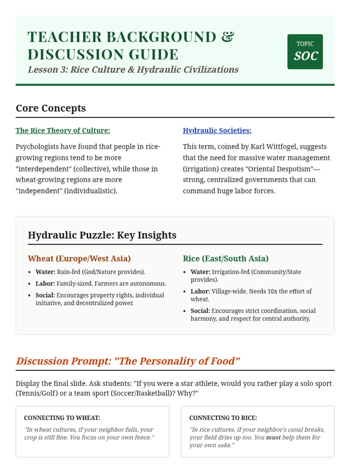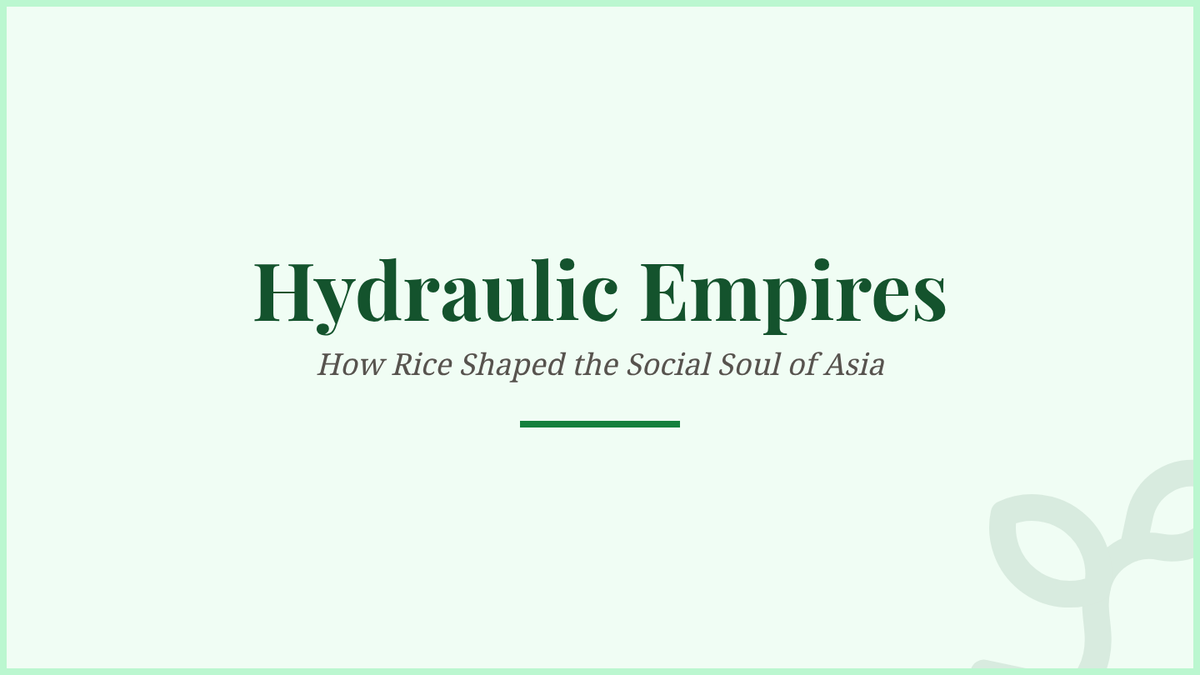 Explores how wet-rice cultivation necessitated complex irrigation and collective social structures in East and Southeast Asia.