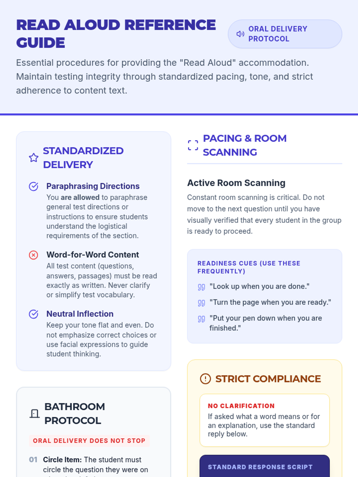 A comprehensive set of essential proctoring guides and tools for general education teachers to effectively manage Special Education accommodations like extended time and read-aloud during assessments.