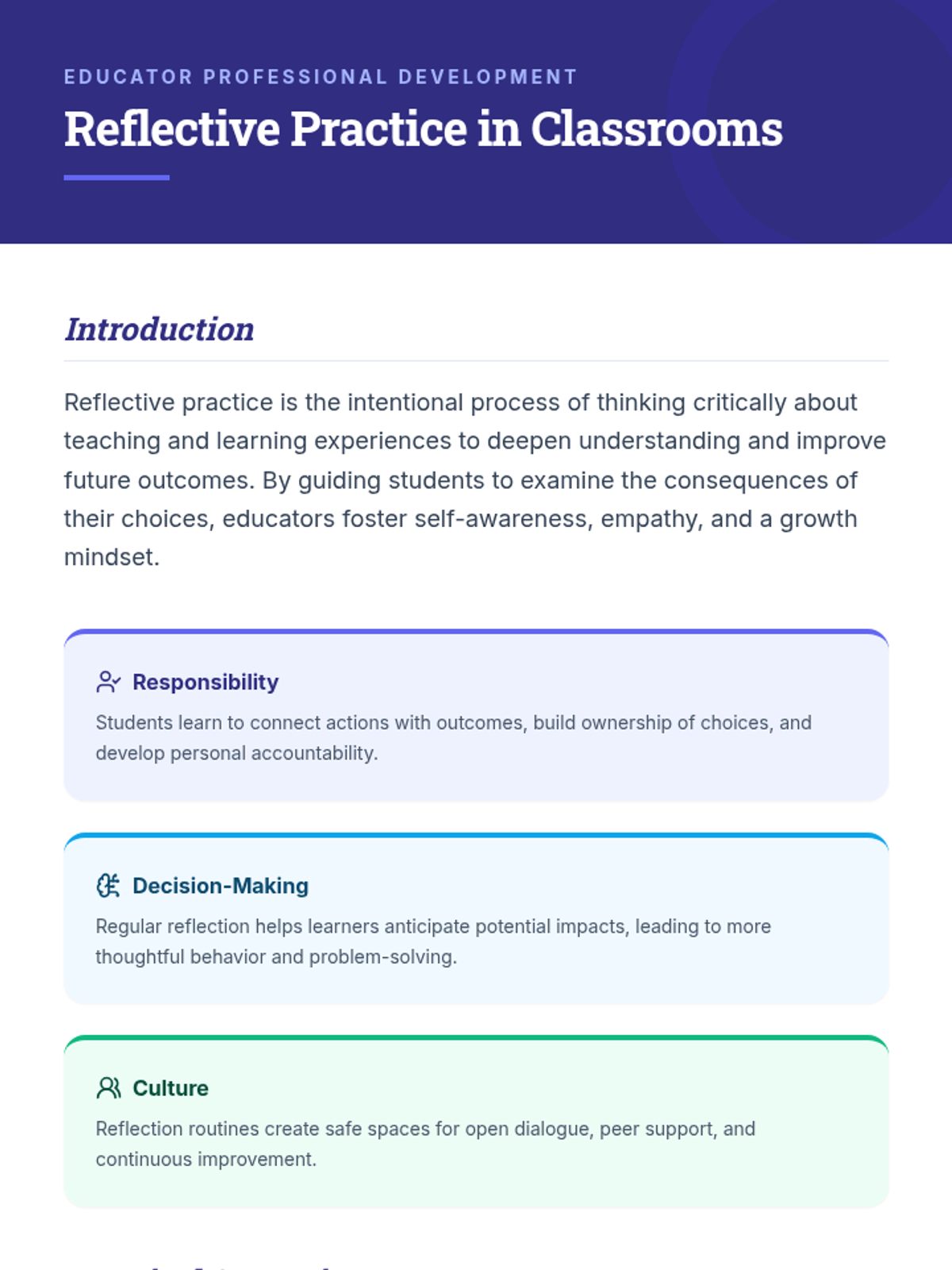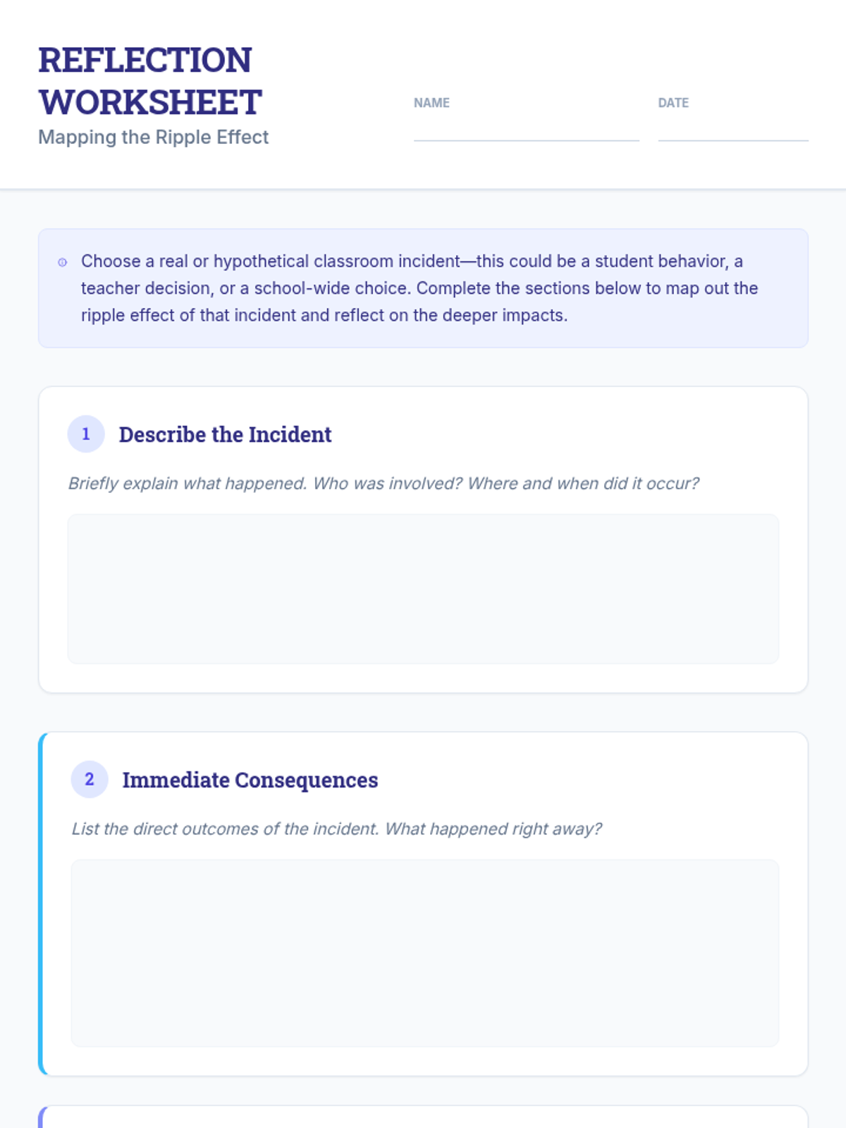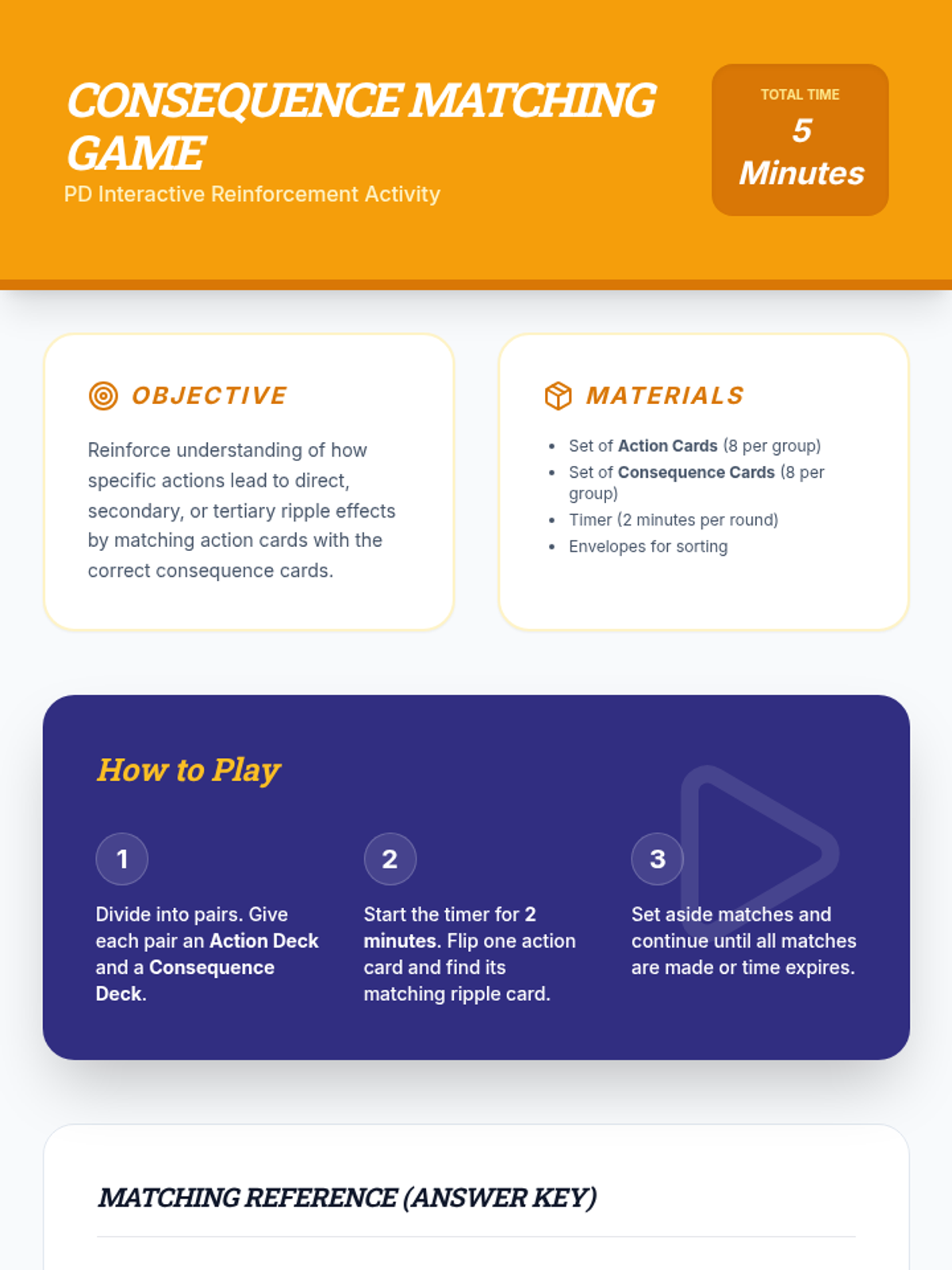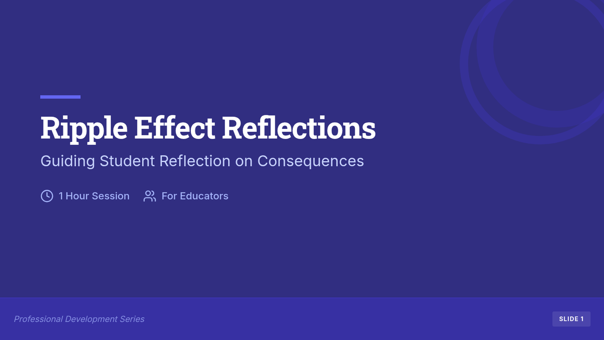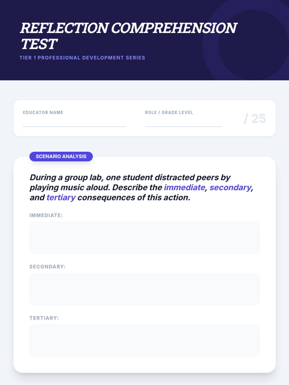 A one-hour Tier 1 professional development session for educators focused on facilitating student reflection on the consequences of their actions through videos, discussions, and hands-on mapping activities.