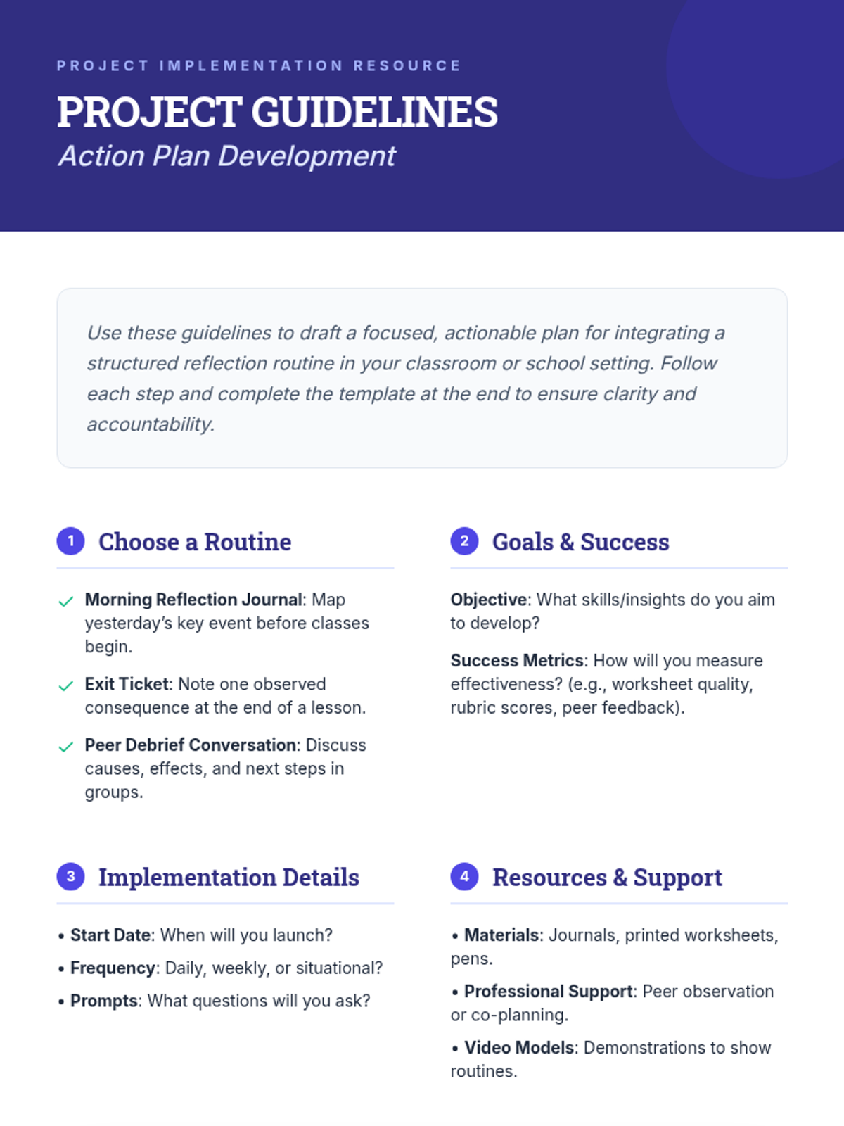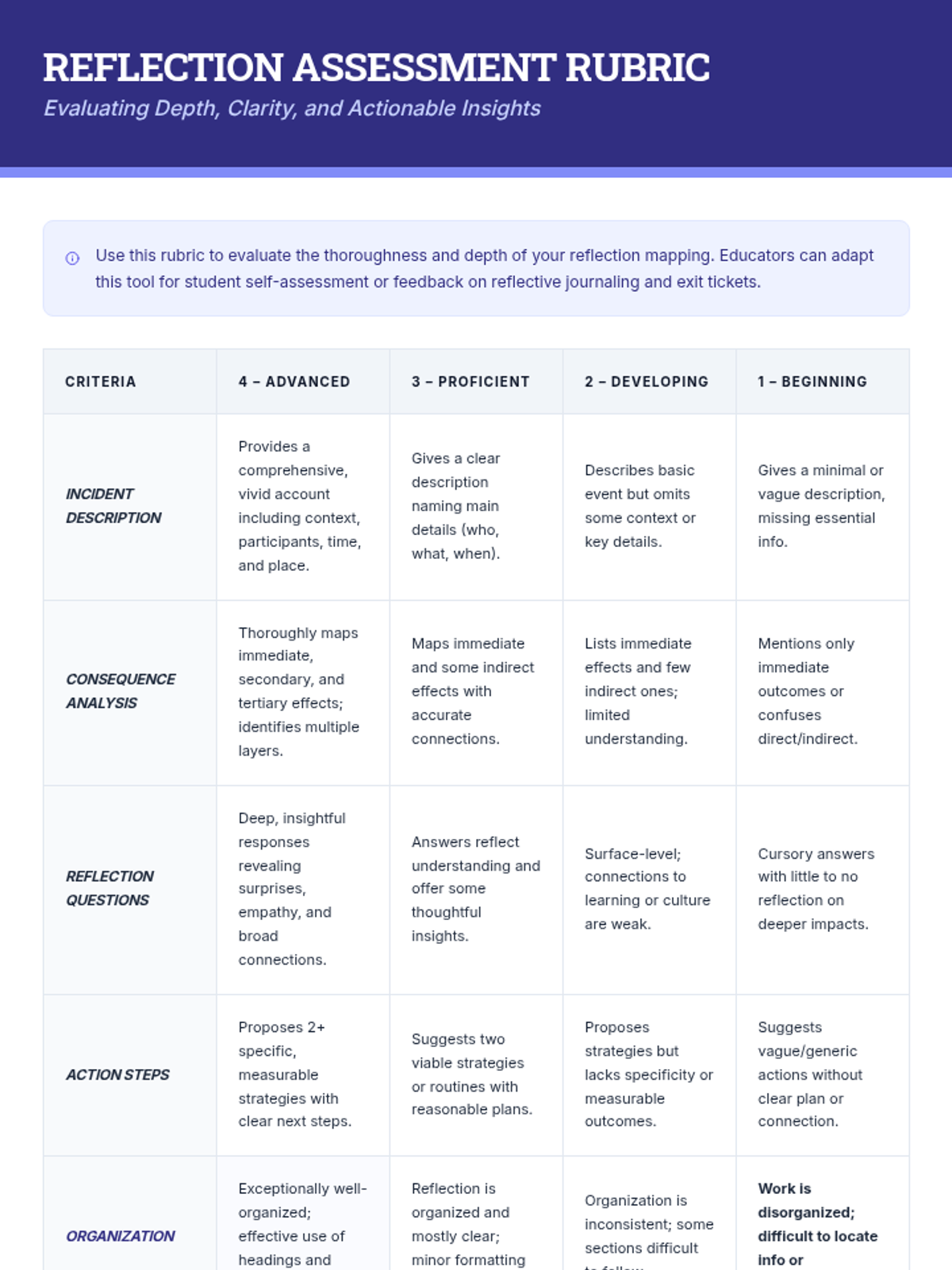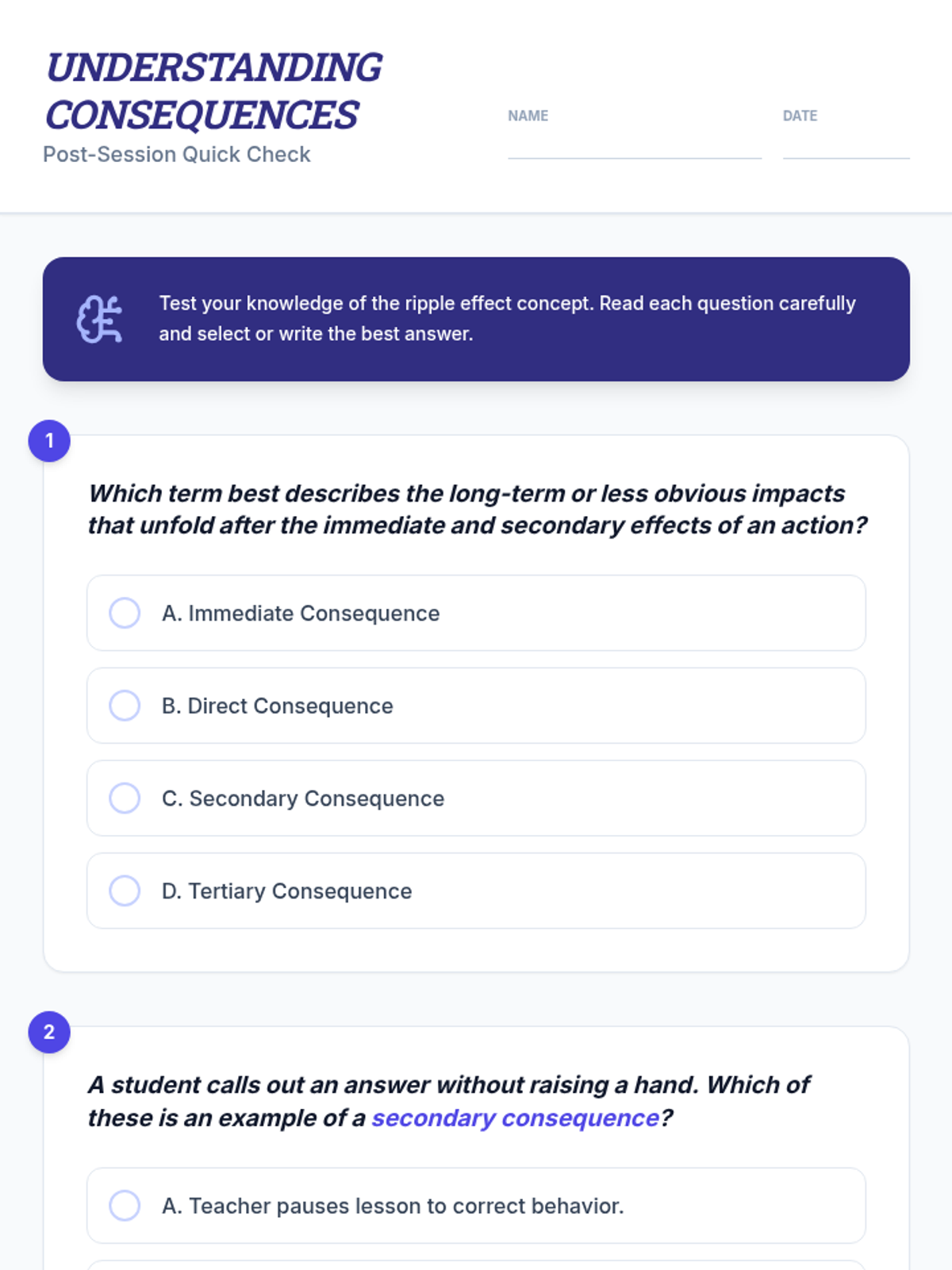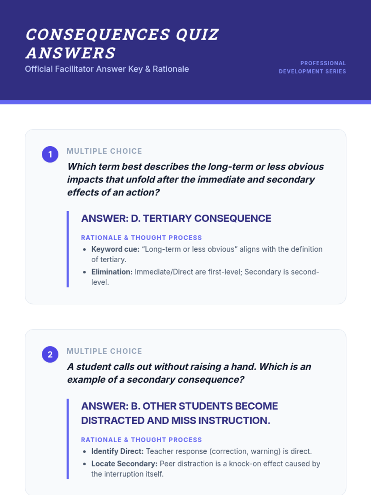 A one-hour Tier 1 professional development session for educators focused on facilitating student reflection on the consequences of their actions through videos, discussions, and hands-on mapping activities.