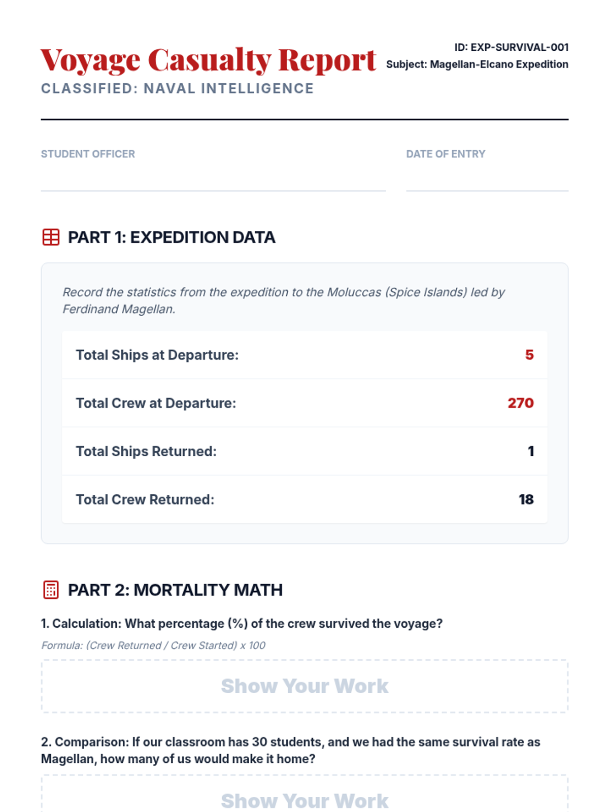 A simulation-heavy lesson where students calculate survival rates and navigate the physical and psychological hazards of long-distance maritime travel.
