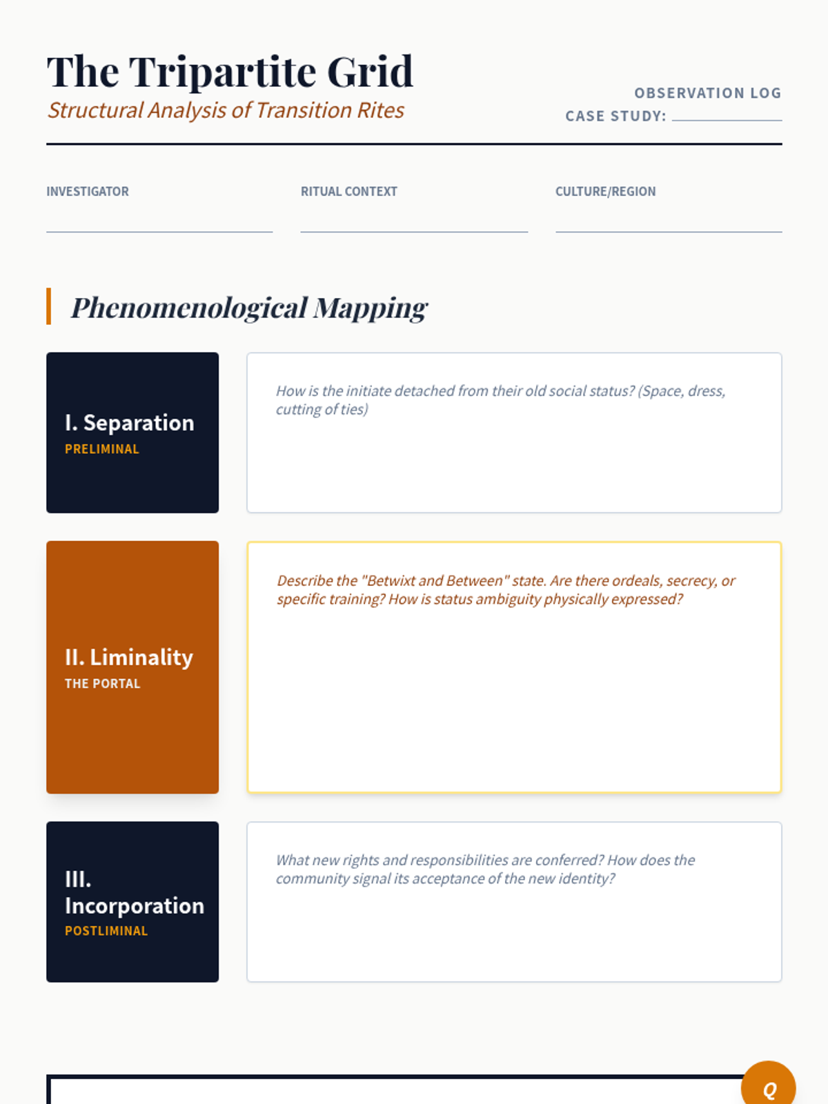 Examines the tripartite structure of rites of passage across global traditions, focusing on how social status is transformed through ritual action.