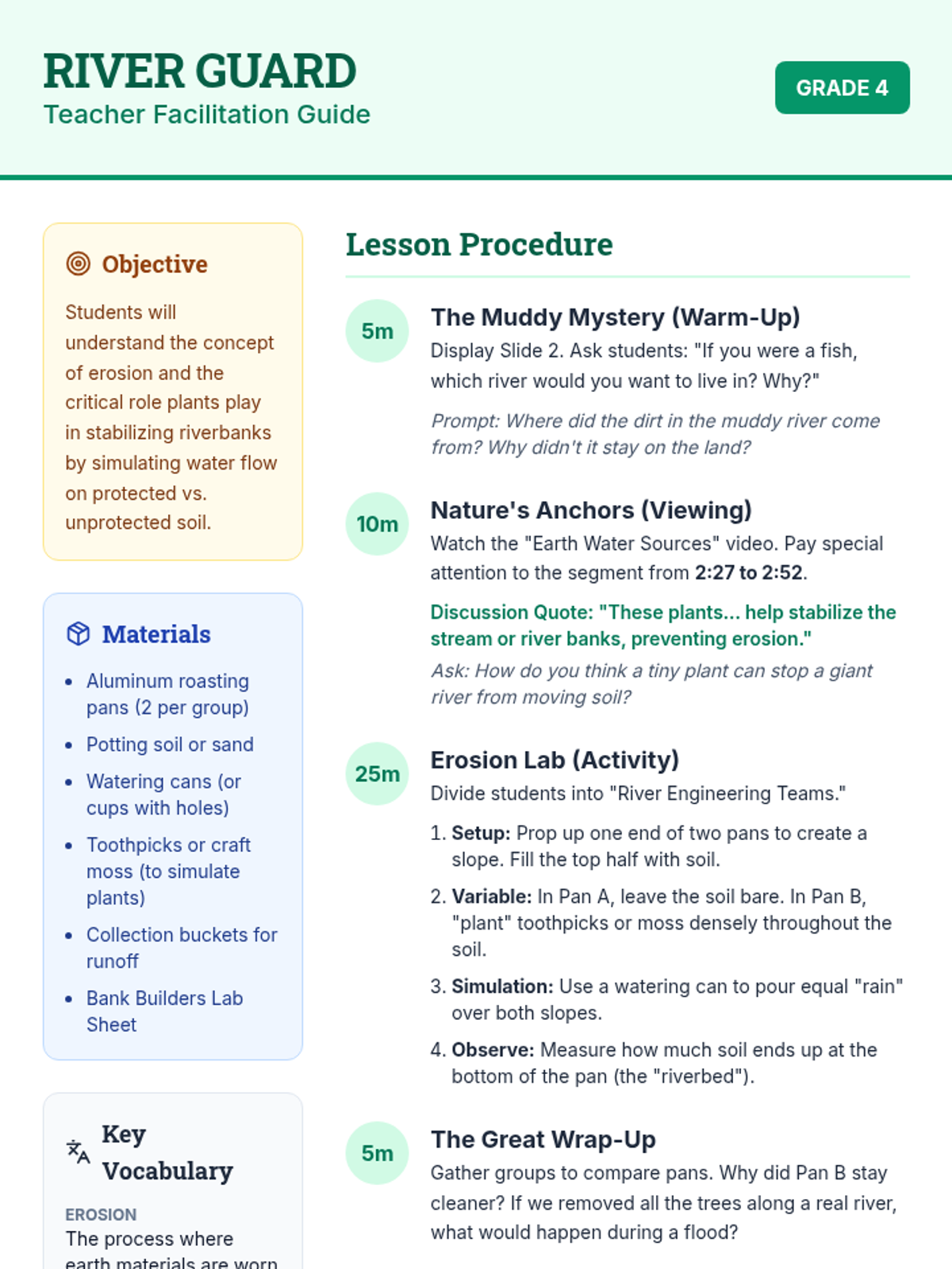 Students explore how plants act as nature's anchors, protecting riverbanks from the power of flowing water through a hands-on erosion simulation and video analysis.