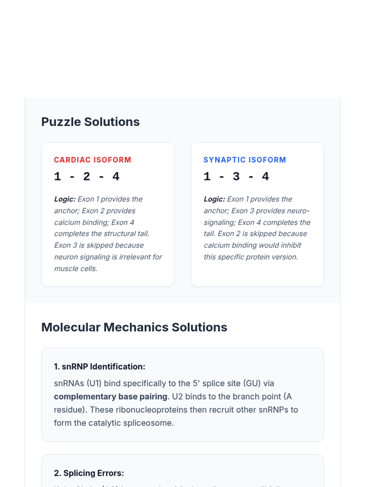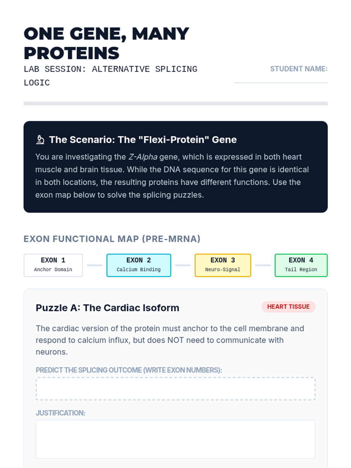 This lesson covers pre-mRNA modifications and alternative splicing, challenging students to predict how multiple protein isoforms can arise from a single gene.