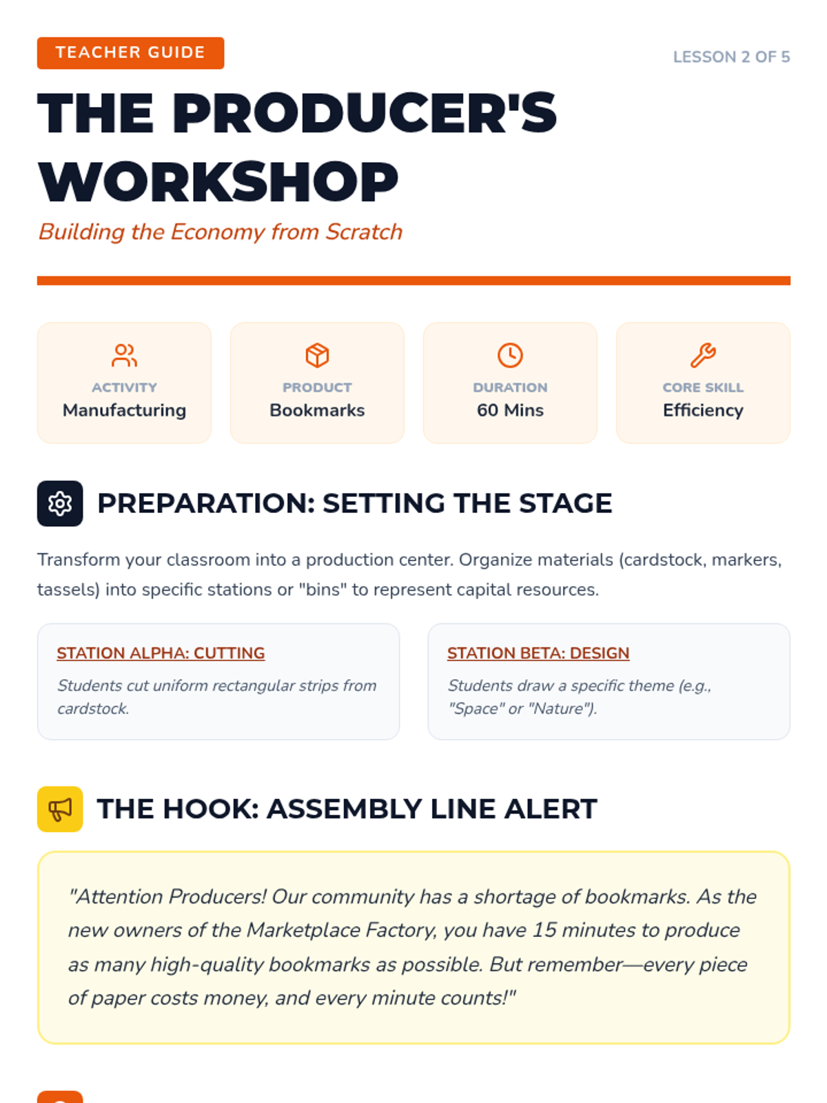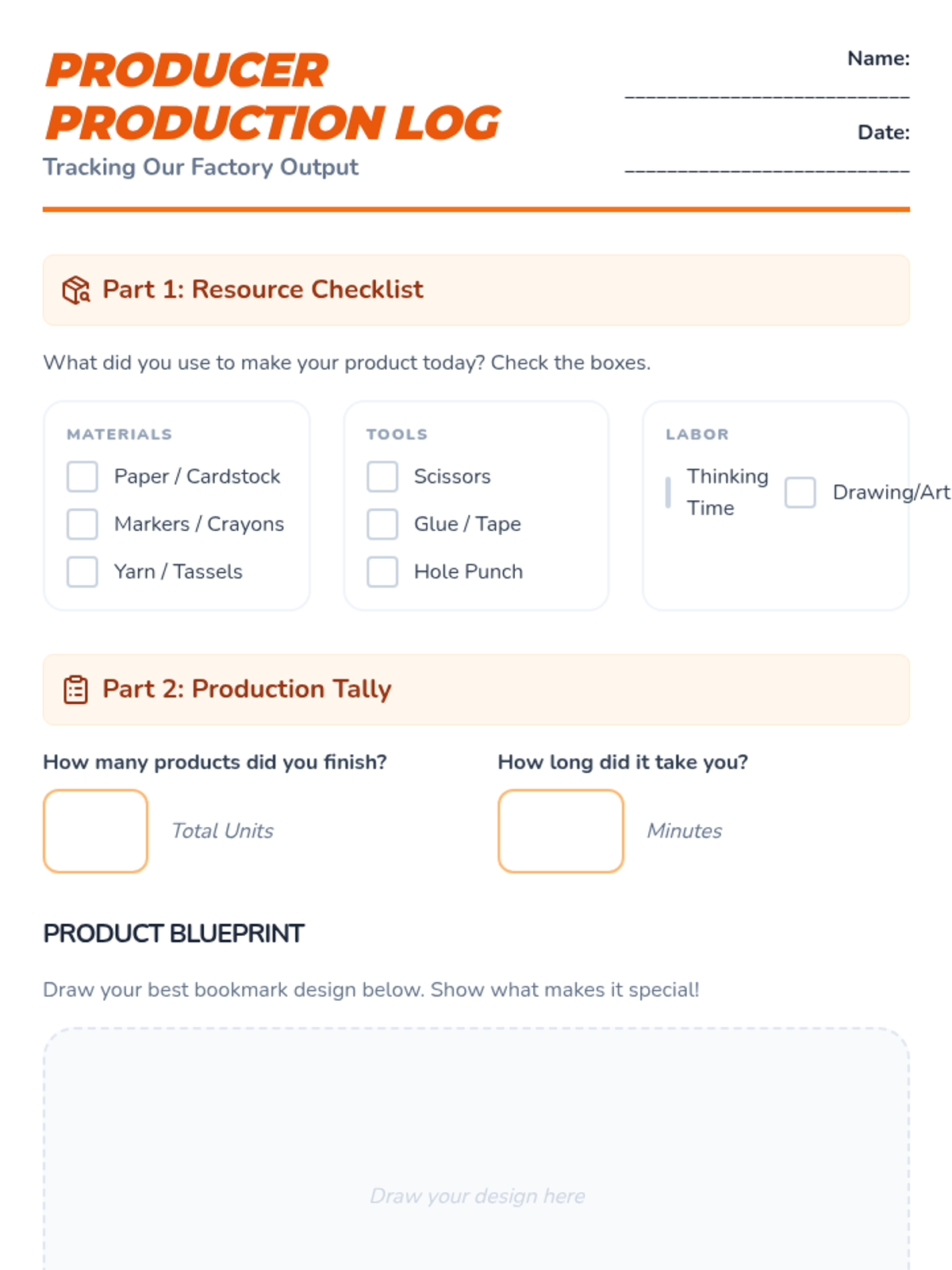 Students become producers by manufacturing a simple product (e.g., paper bookmarks or greeting cards) using raw materials. They track the resources used and the time spent, understanding that production requires input. This lesson highlights the effort and resources behind the products they see in stores.