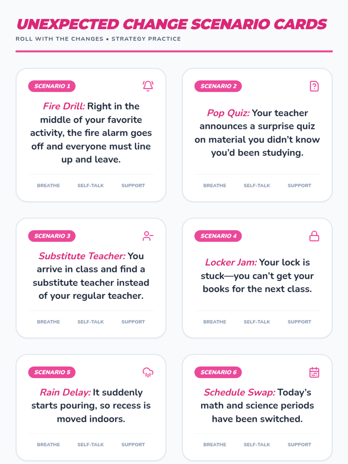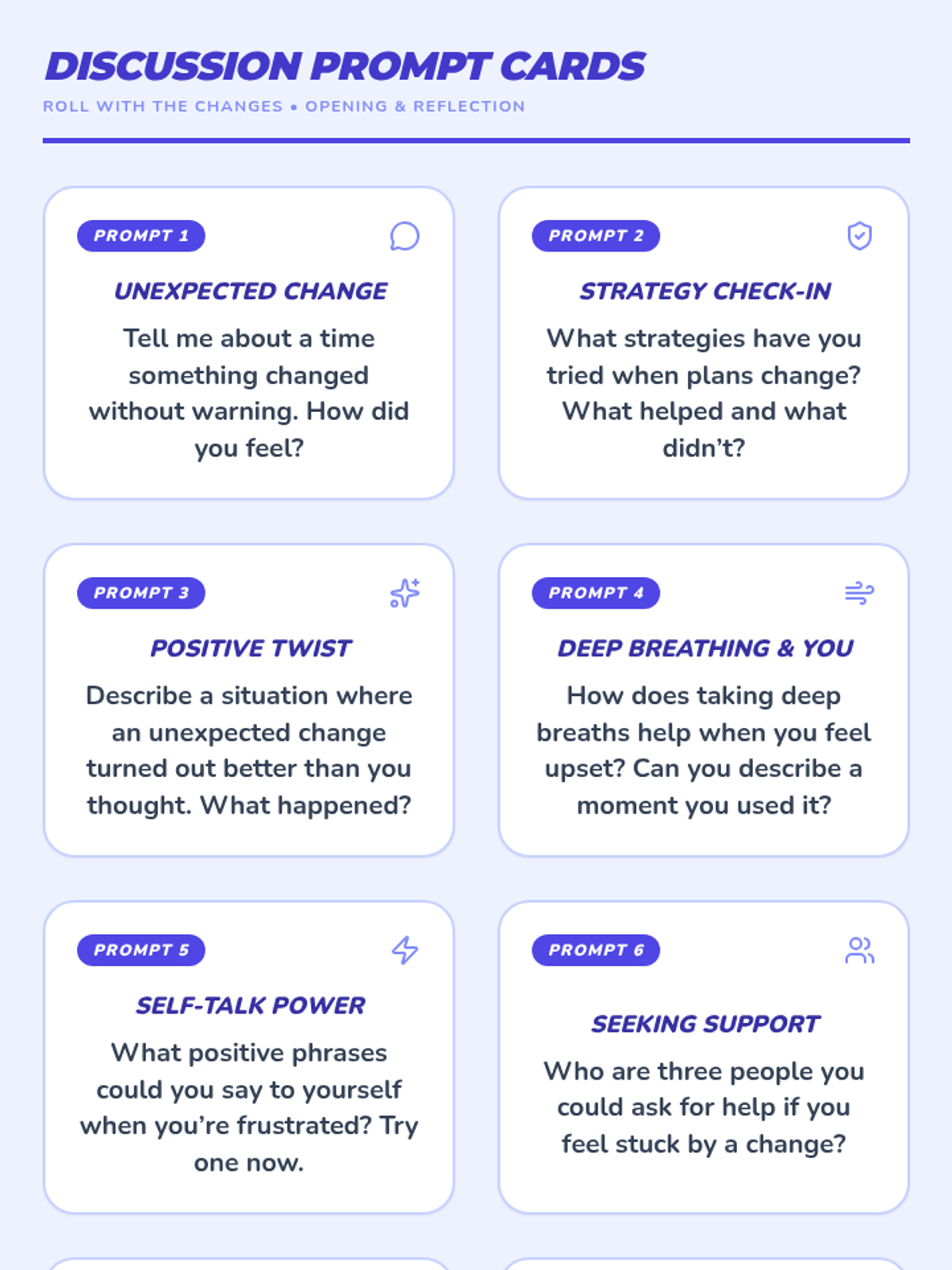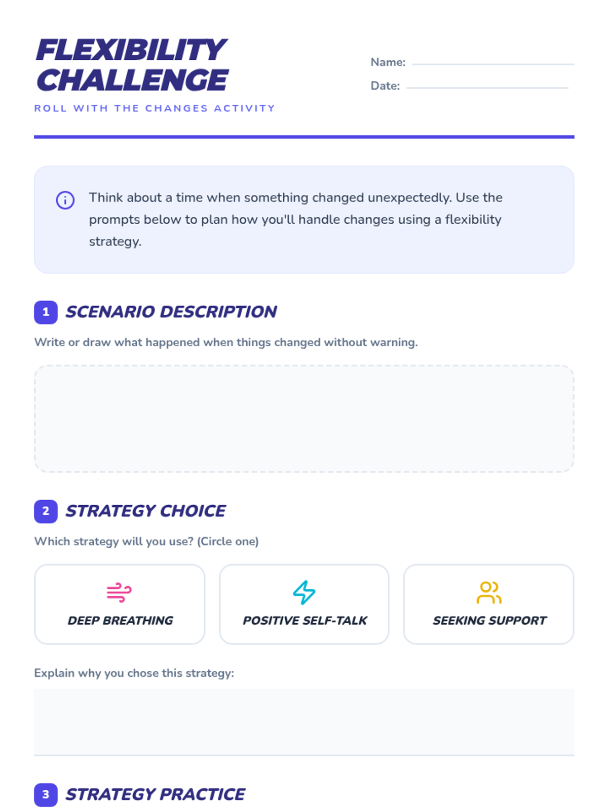 A 30-minute individual lesson for 7th-grade students with autism to develop flexibility skills. Students learn strategies like deep breathing and positive self-talk to manage unexpected changes through discussion, interactive slides, and a board game.
