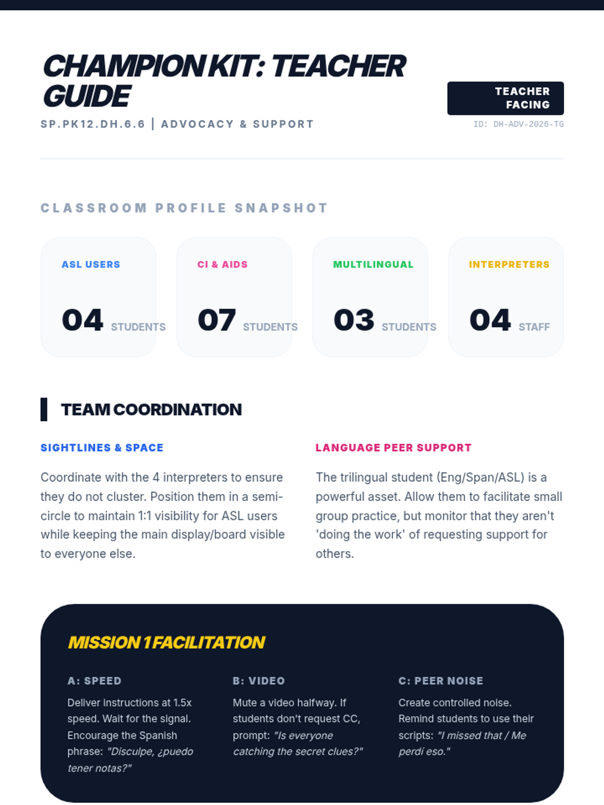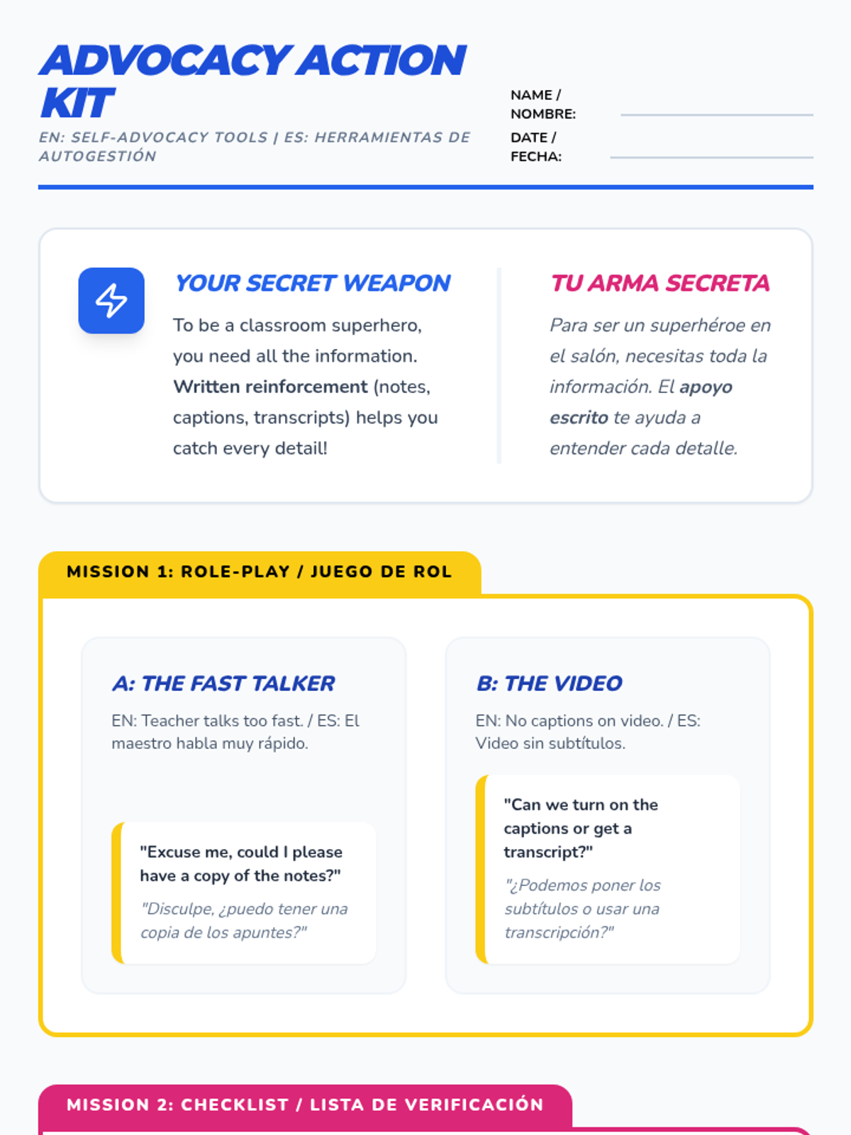 A lesson focused on empowering students with hearing loss to self-advocate for written instructional reinforcements like transcripts and closed captions.