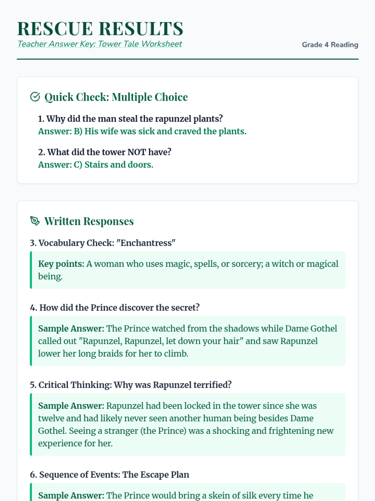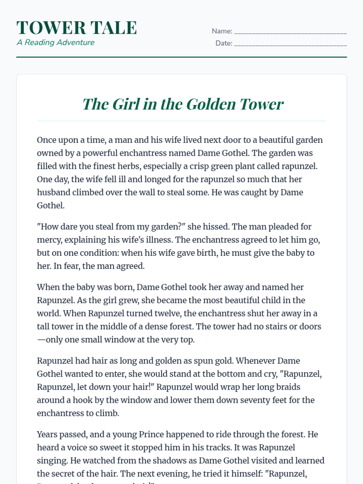 A deep dive into the classic fairy tale of Rapunzel, focusing on character motivations, plot structure, and reading comprehension for 4th-grade students.