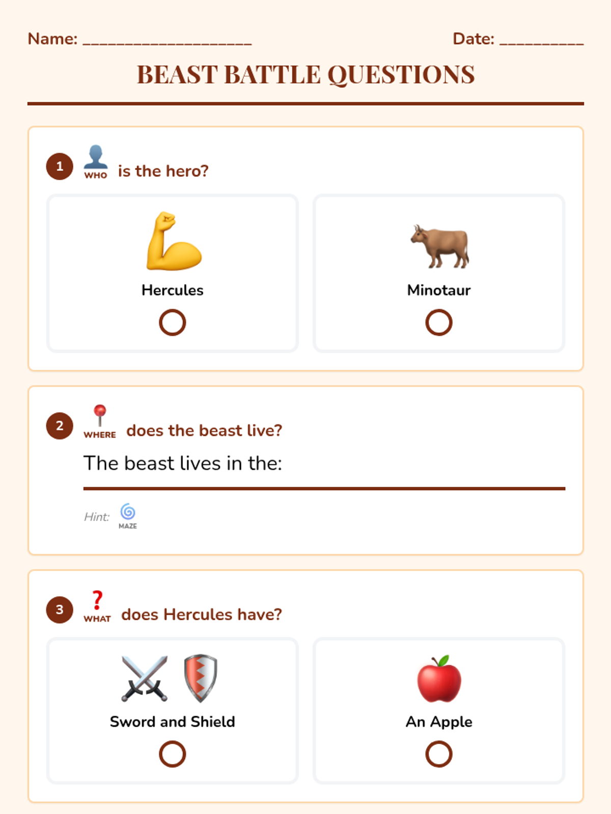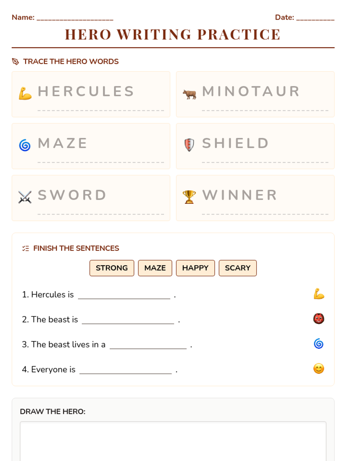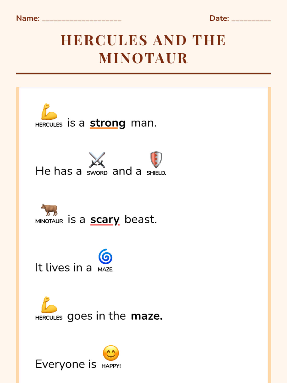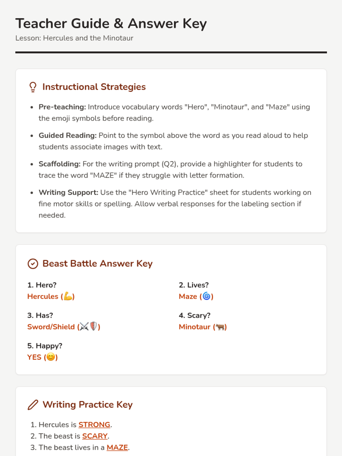 A focused lesson on the story of Hercules and the Minotaur, using simplified language and visual supports to build reading confidence and narrative understanding.