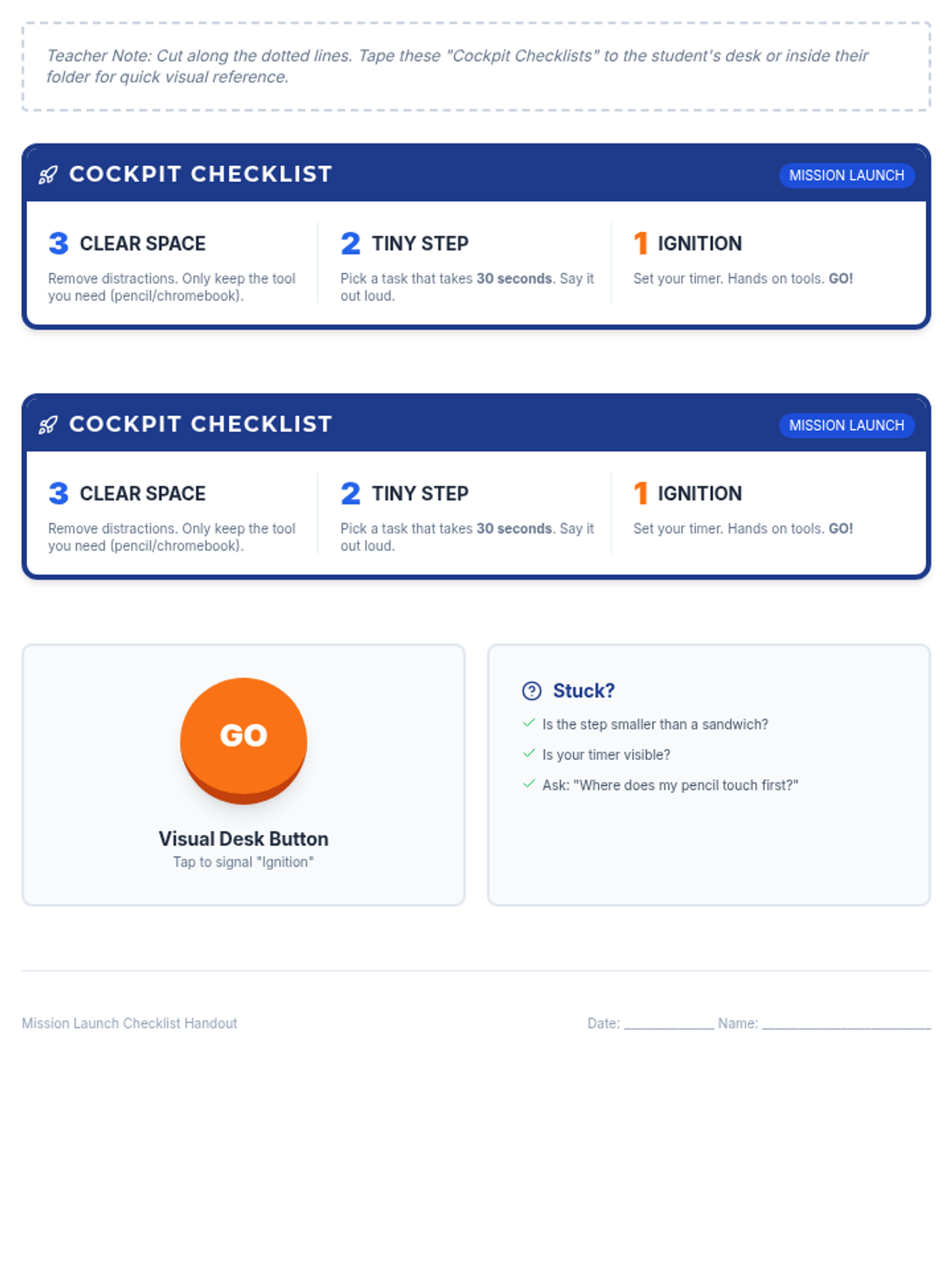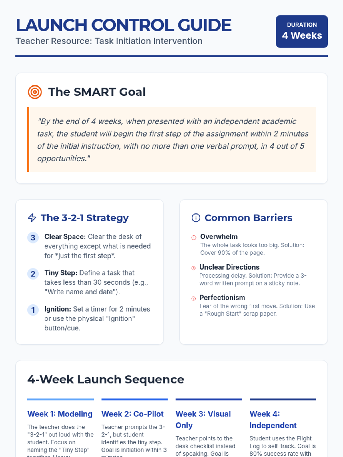 A focused 4-week intervention designed to help students overcome the 'blank page' hurdle by mastering task initiation through a structured 3-2-1 countdown strategy and visual supports.