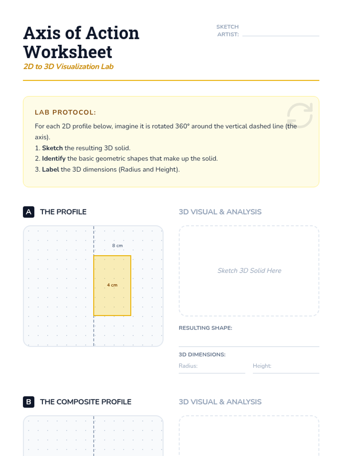 Visualizing 3D solids formed by rotating 2D composite shapes around an axis and planning the subsequent volume calculations.