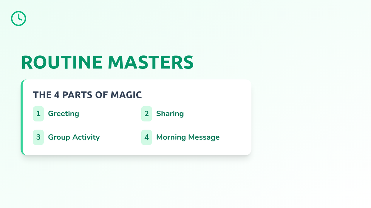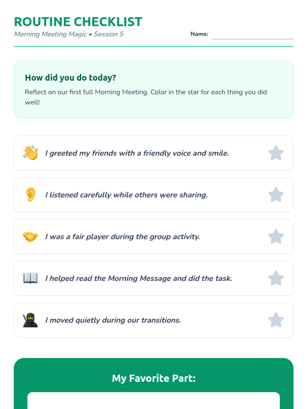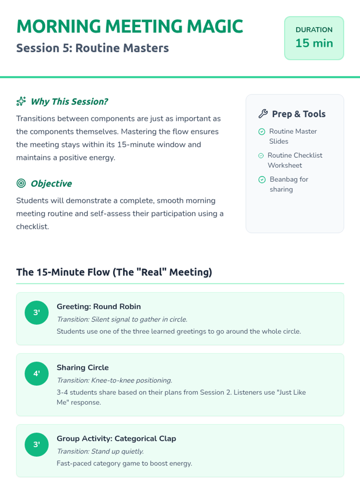 Students combine all elements of the morning meeting into a smooth, student-led routine.