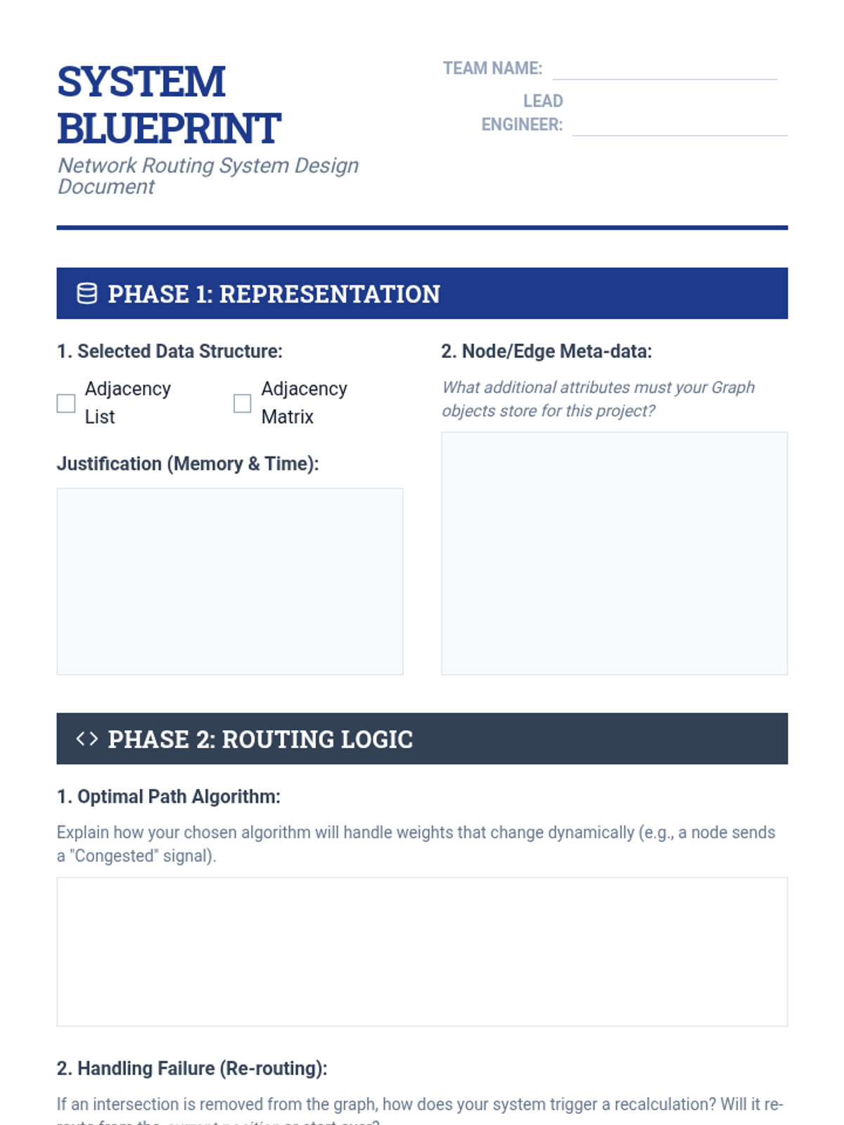 A culminating project where students design a network routing system that handles dynamic constraints and optimizes for efficiency.