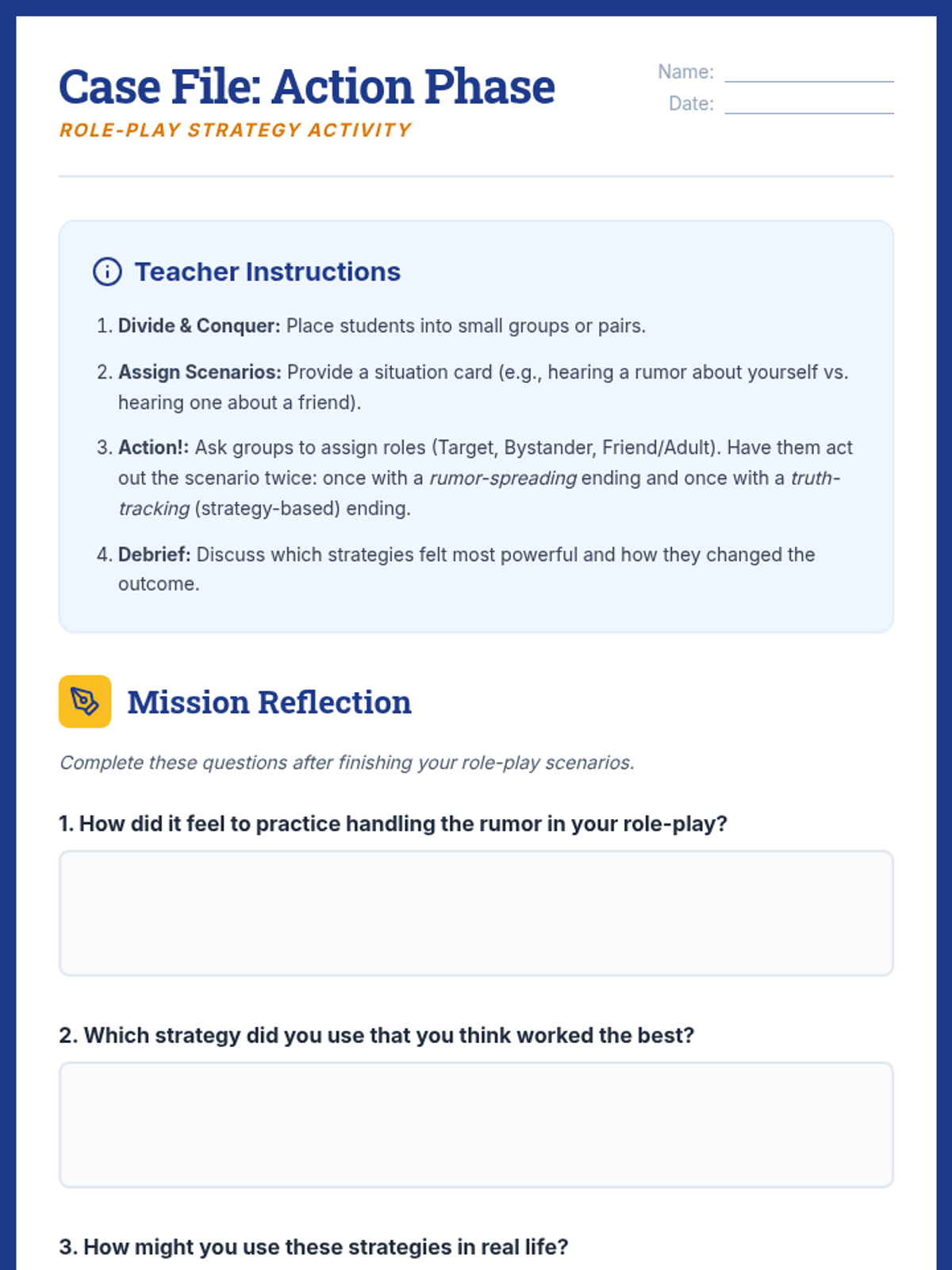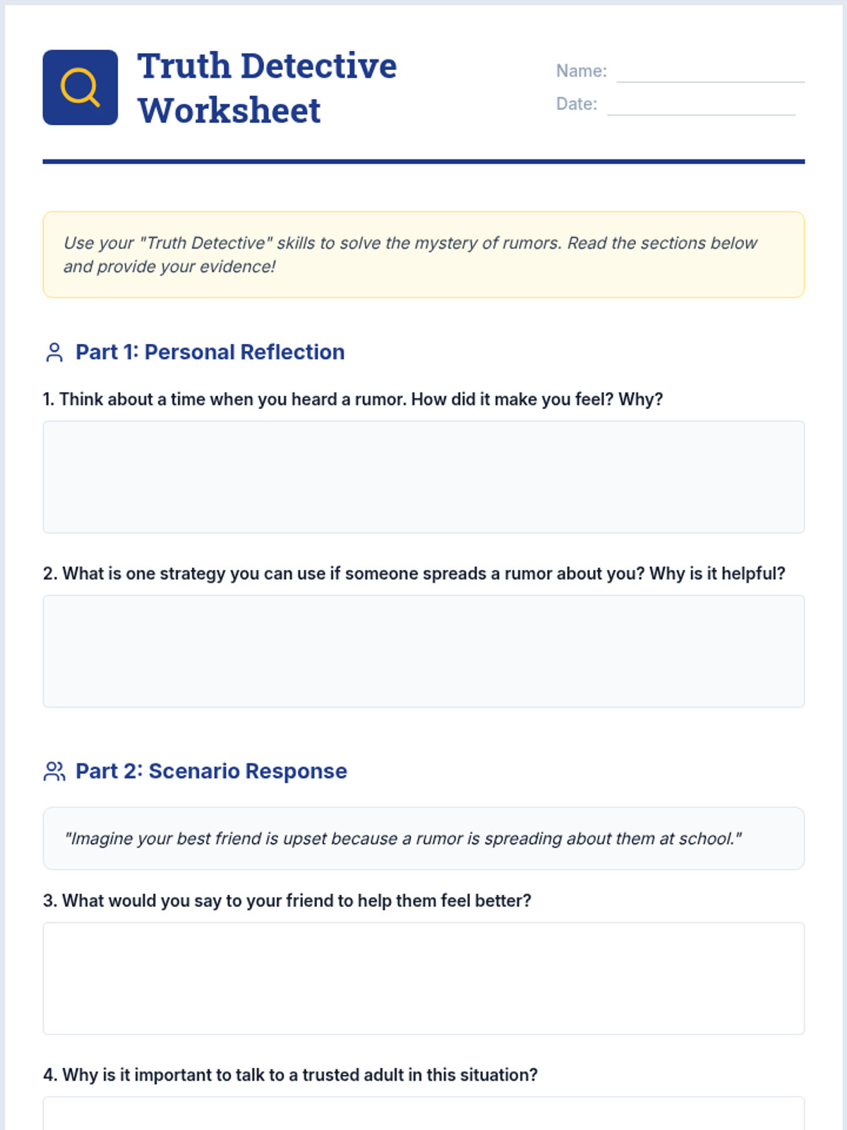 This lesson is designed for 4th graders to help them understand and manage situations when rumors are spread about them, equipping them with social-emotional skills to handle peer pressure and maintain self-esteem.