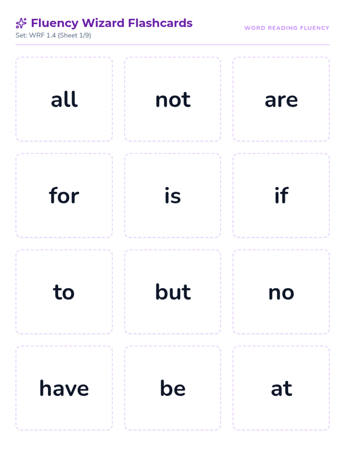 Intensive training on the second set of word reading fluency words. Students master high-frequency and decoding words from the DIBELS WRF 1.2 list.