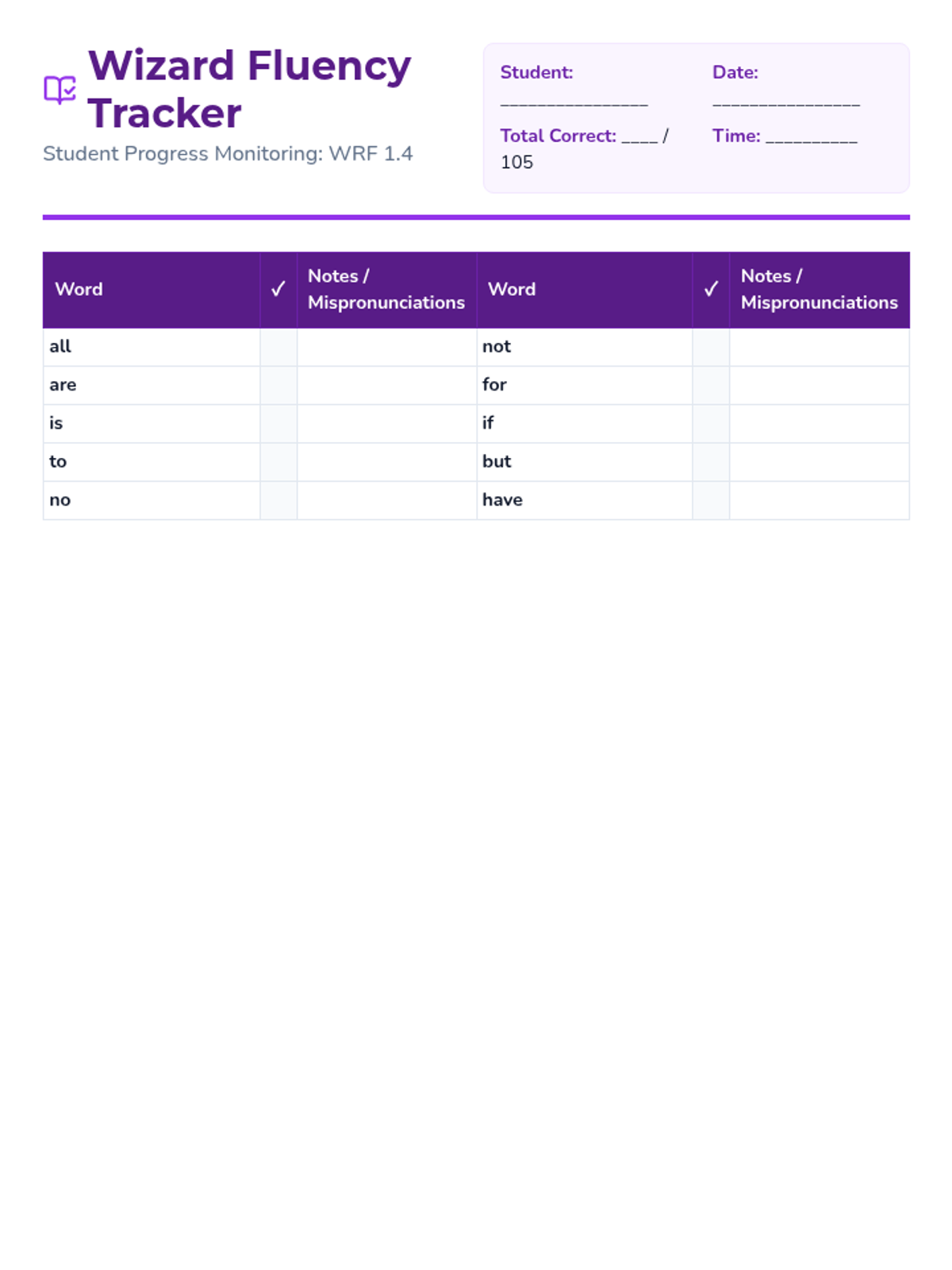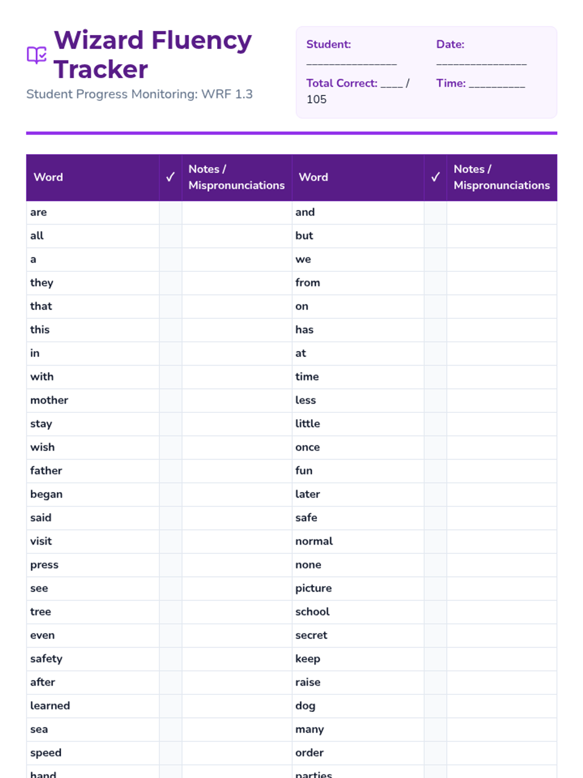 A set of engaging, themed flashcards and a corresponding progress monitoring tracker based on DIBELS 8th Edition Word Reading Fluency lists. Students act as 'Word Wizards' to master high-frequency and decoding words.