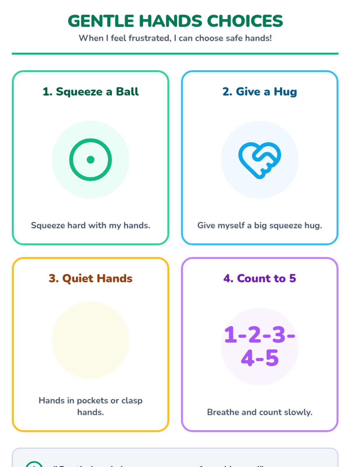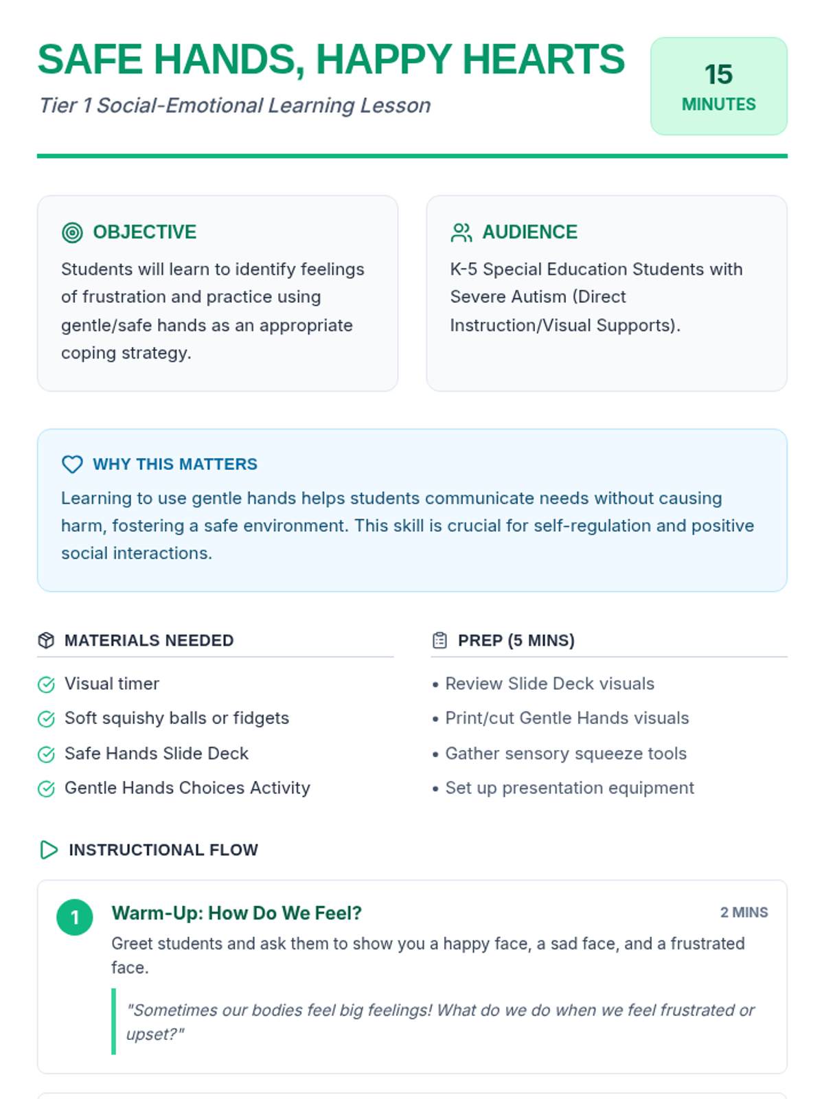 A 15-minute Tier 1 lesson for K-5 special education students with severe autism to learn and practice using gentle hands instead of hitting or pushing when frustrated.