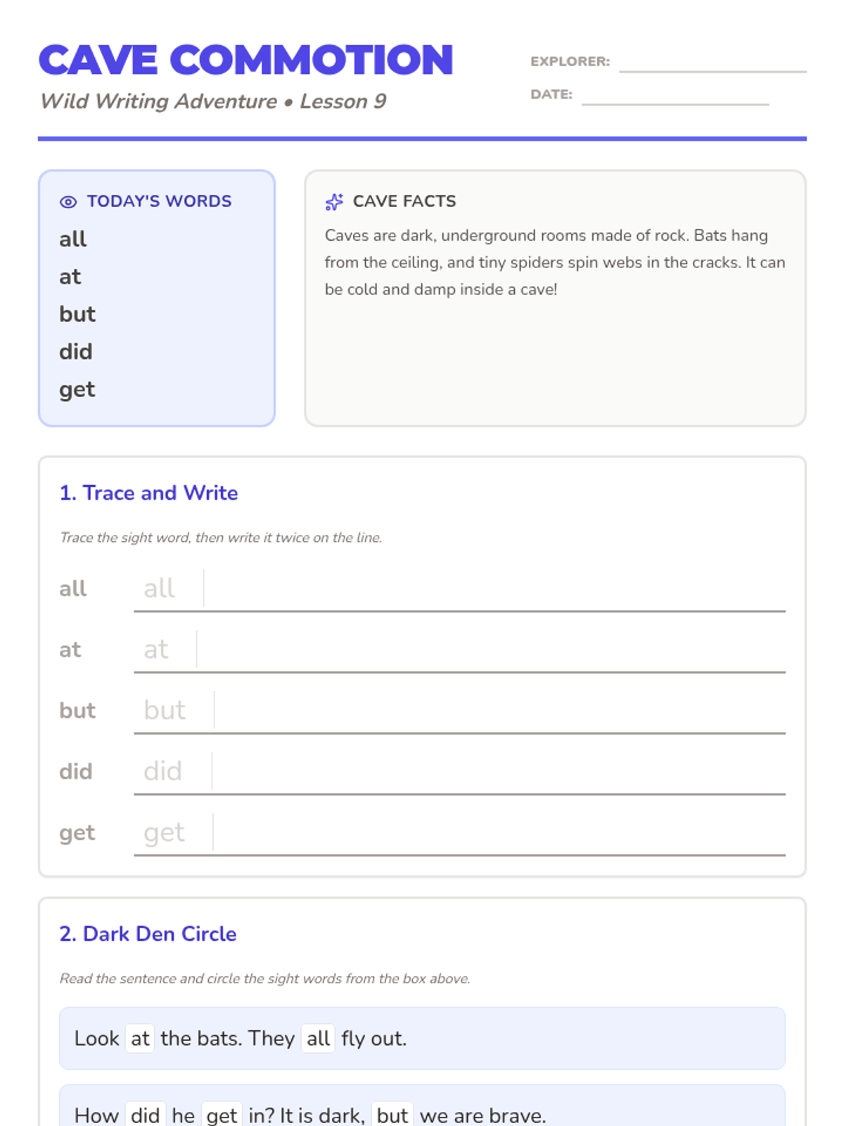 Venture into the mysterious world of caves to master essential sight words while meeting bats, spiders, and salamanders.