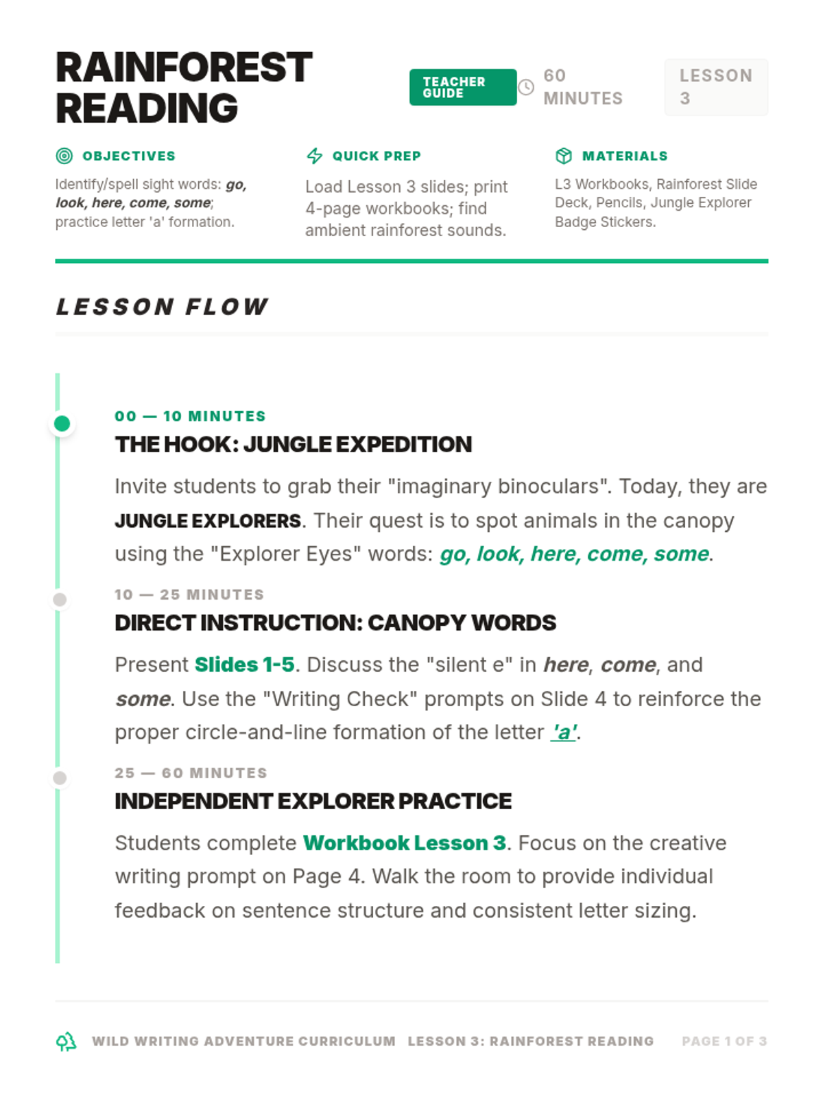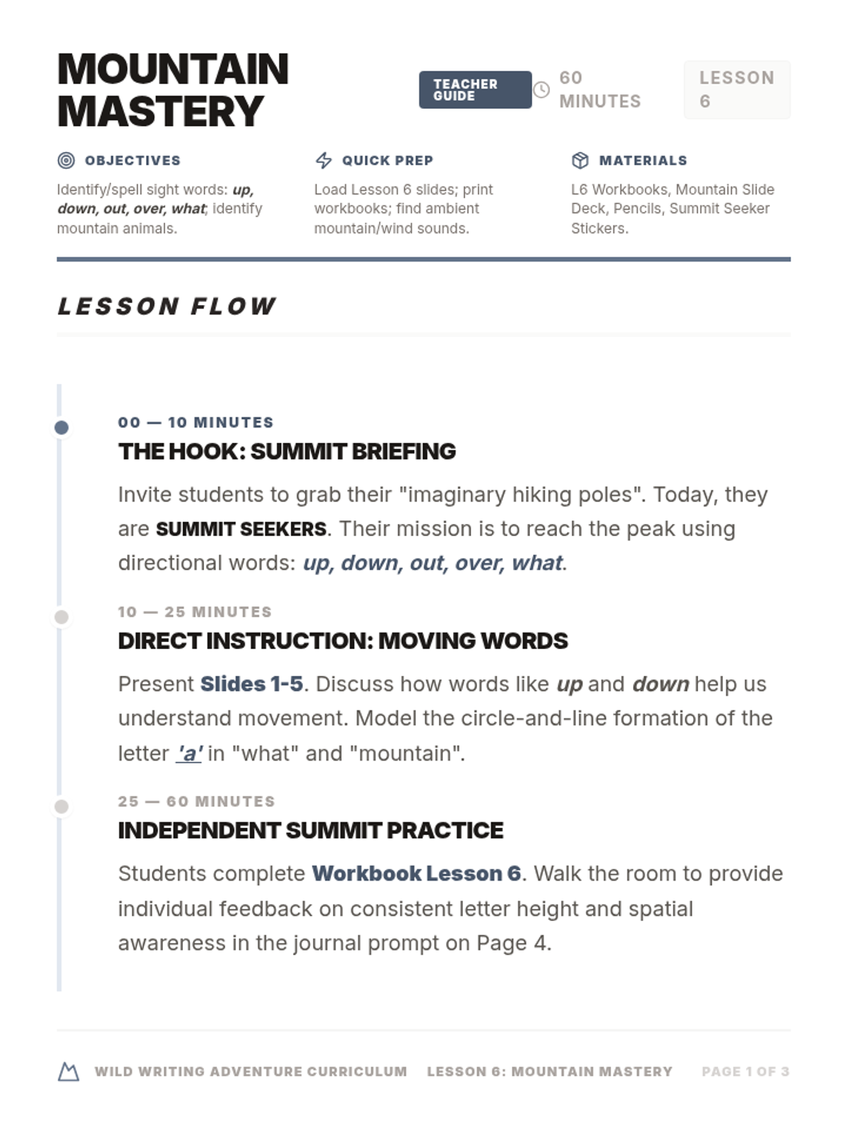 A high-level overview of the Wild Writing Adventure curriculum, including teacher guides, scope and sequence, and implementation strategies.