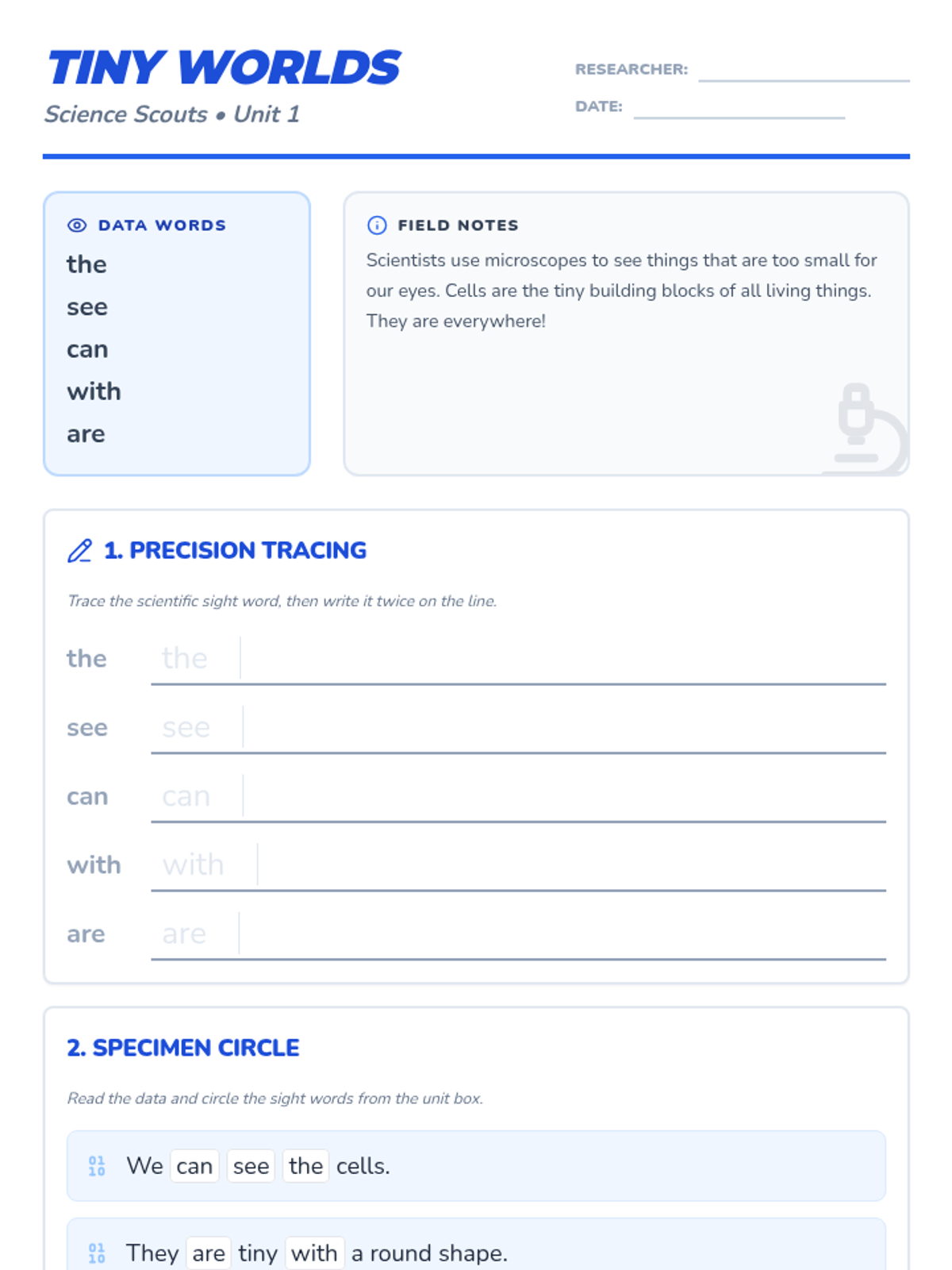 Dive into the invisible world of cells and microscopes to master essential sight words while discovering how scientists see tiny things.