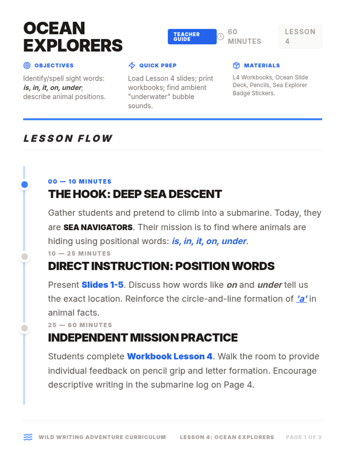 Dive into the deep blue ocean to master positional sight words while discovering sea turtles, sharks, and octopuses.