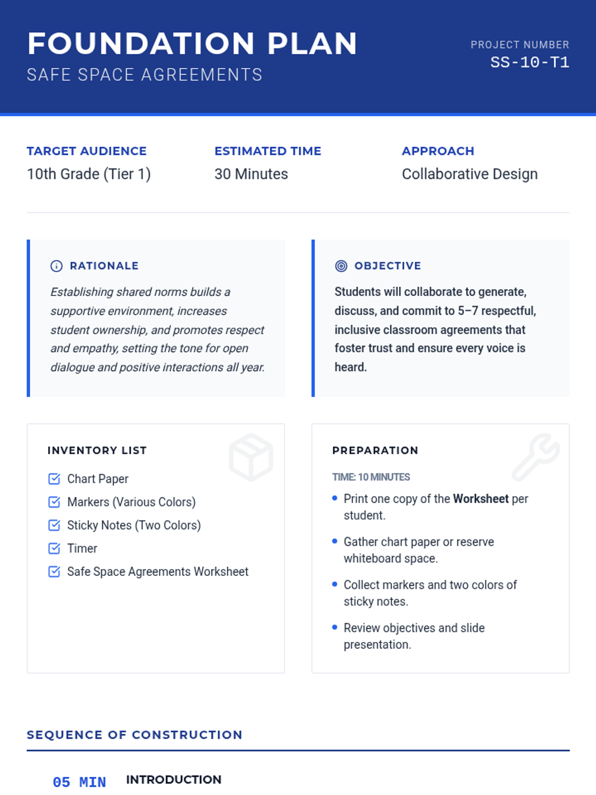A 30-minute lesson for 10th graders to collaboratively create and commit to classroom norms that foster respect and inclusivity.