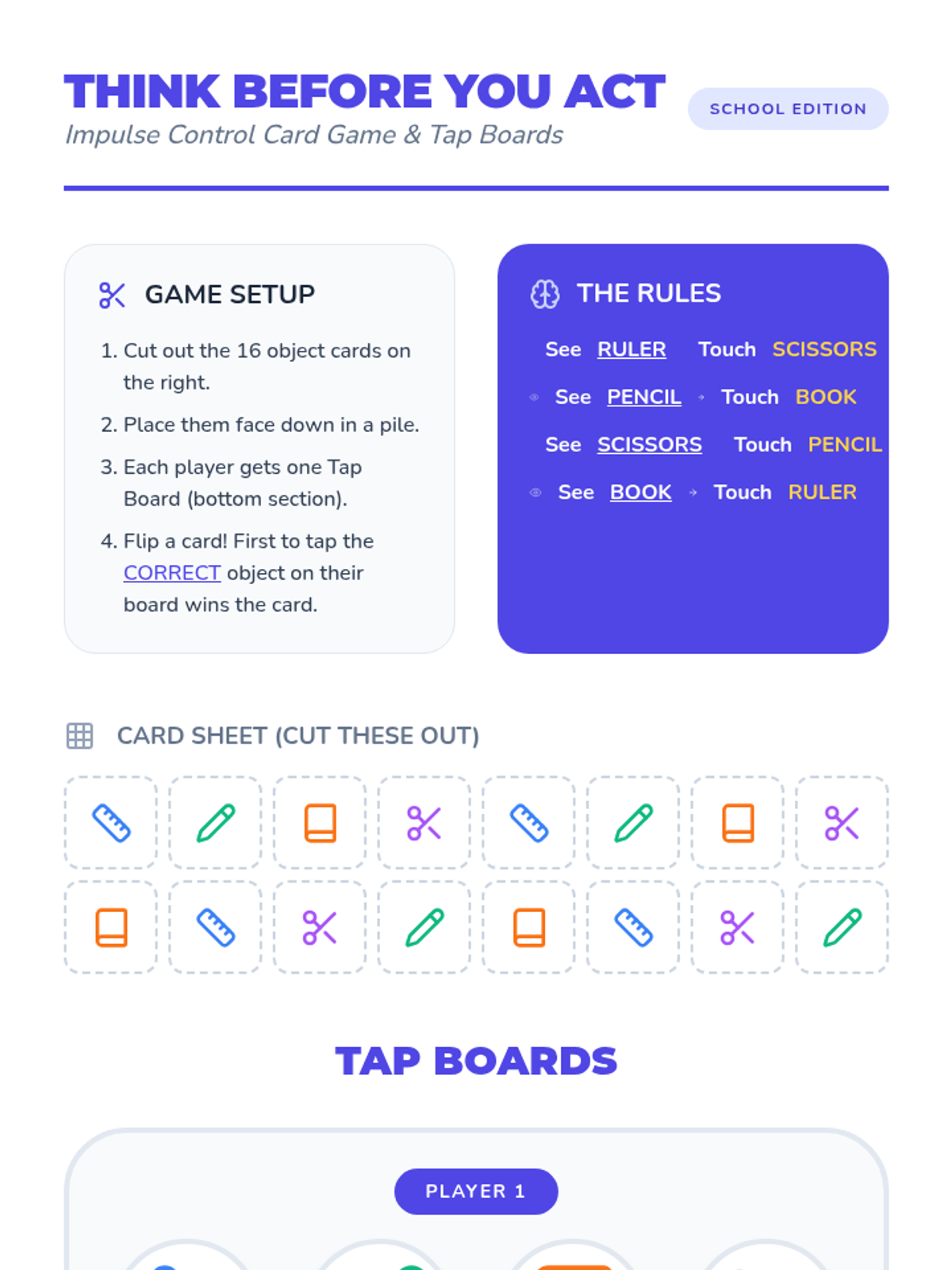 Targets responsible decision-making and self-management by introducing a 'Stop-Think-Act' framework for following directions and staying in seat.