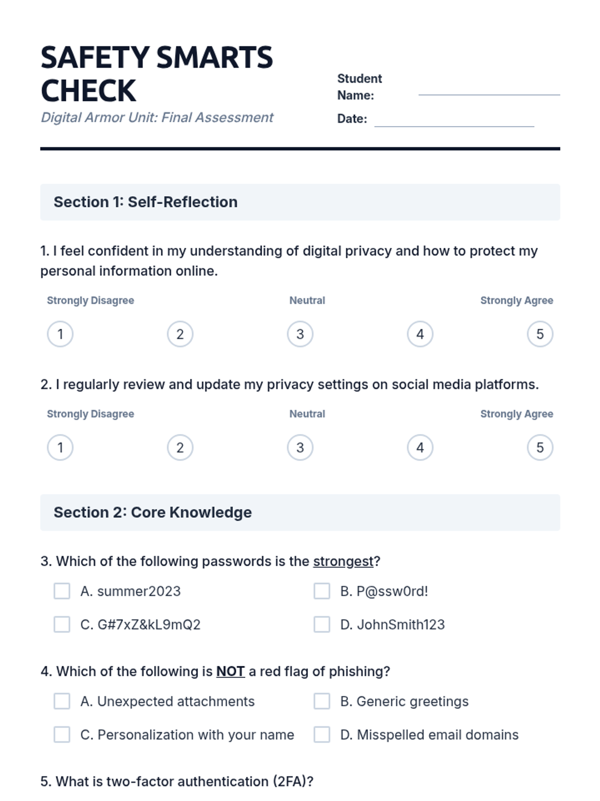 The final assessment and reflection session to gauge student learning and establish long-term online safety habits.