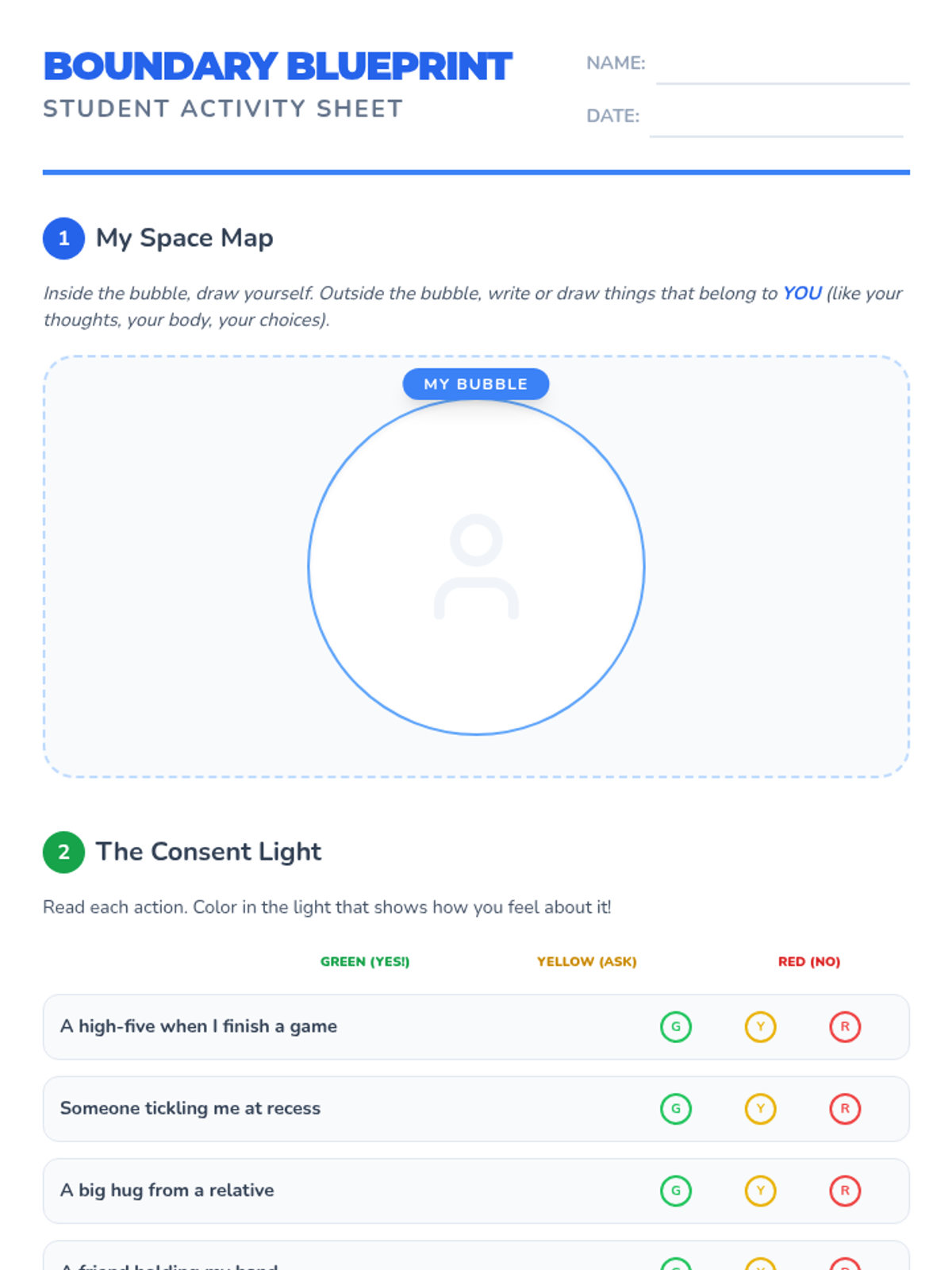 This lesson teaches children vital body safety rules, including the 'No, Go, Tell' strategy and understanding personal boundaries. Through interactive activities and visual reminders, kids learn to identify trusted adults and respond confidently to uncomfortable situations.
