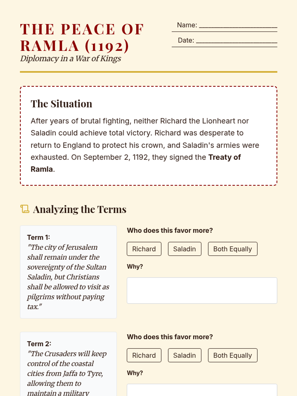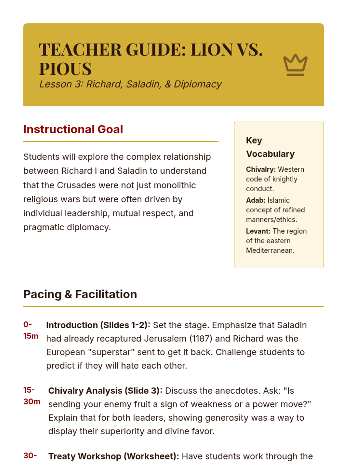 A study of Richard the Lionheart and Saladin during the Third Crusade, focusing on their diplomatic relationship and the chivalric ideals of the time.