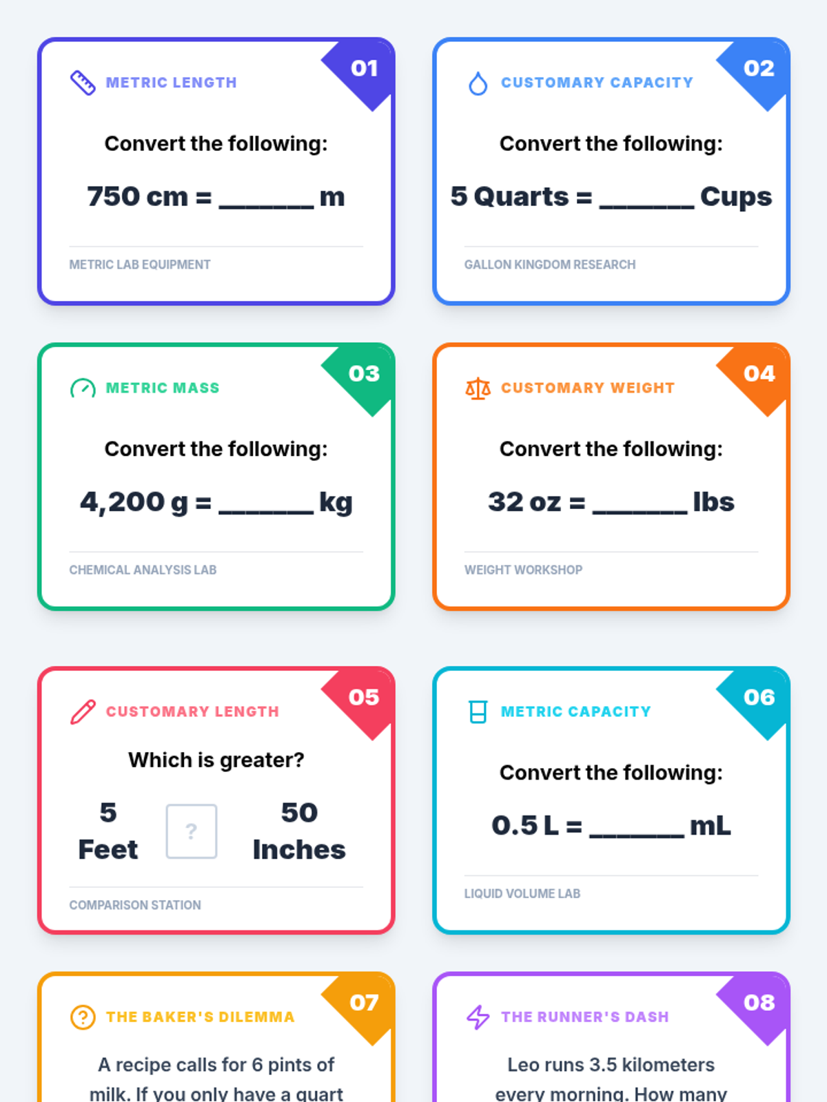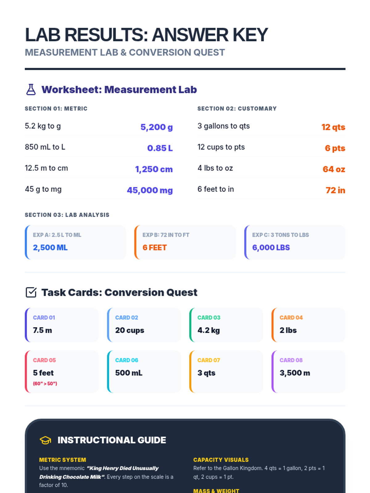 A comprehensive lesson on converting units within the Metric and US Customary systems using visual models, anchor charts, and hands-on task cards.