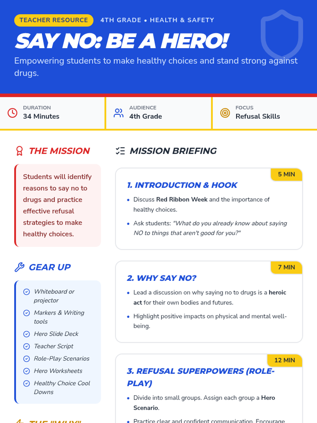This lesson empowers 4th-grade students to confidently say 'no' to drugs, fostering a safe and healthy lifestyle through engaging discussions, role-plays, and creative reflection.