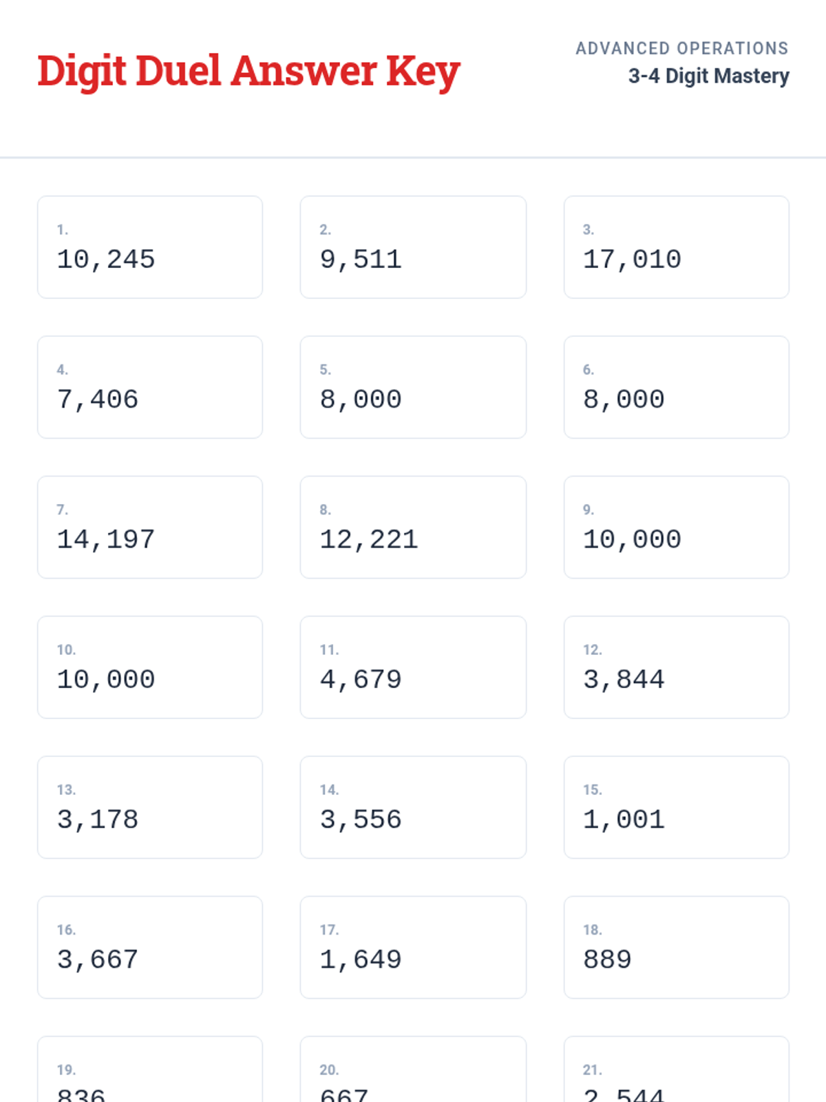 A comprehensive set of tools for assessing and tracking a student's ability to identify numbers 1 through 20 in randomized order.