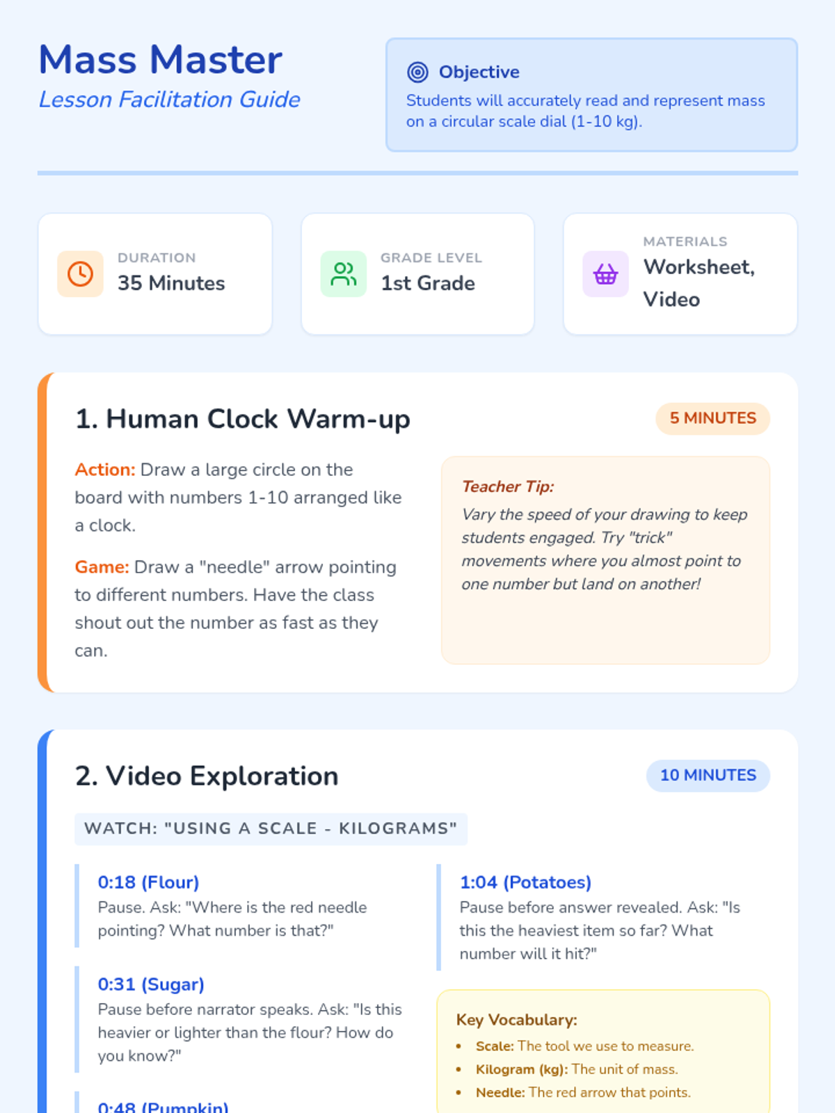 Students learn to read circular scale dials accurately through a video-based exploration of mass and a hands-on drawing activity.