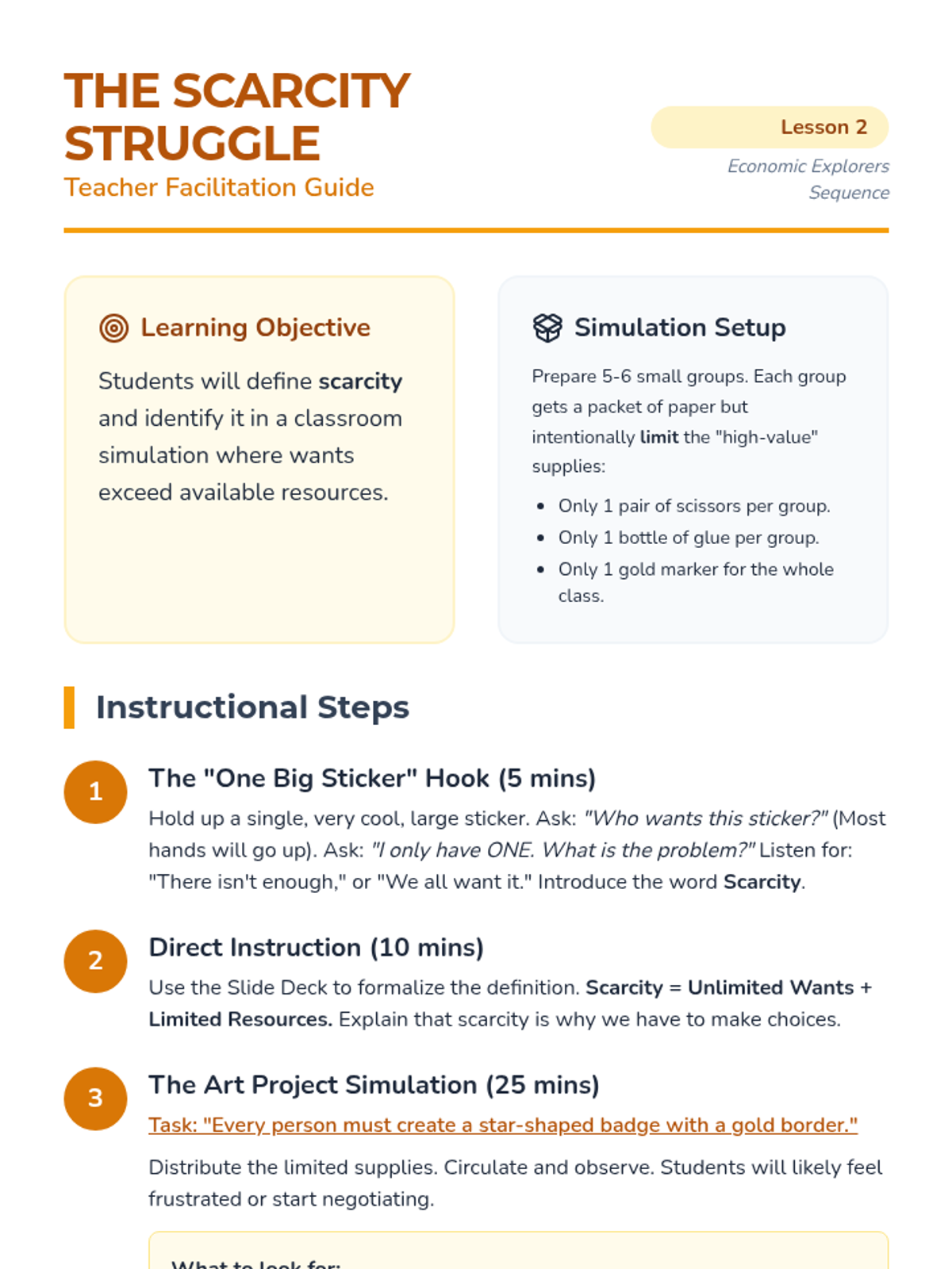 A hands-on simulation where students experience the stress of limited resources and brainstorm solutions.