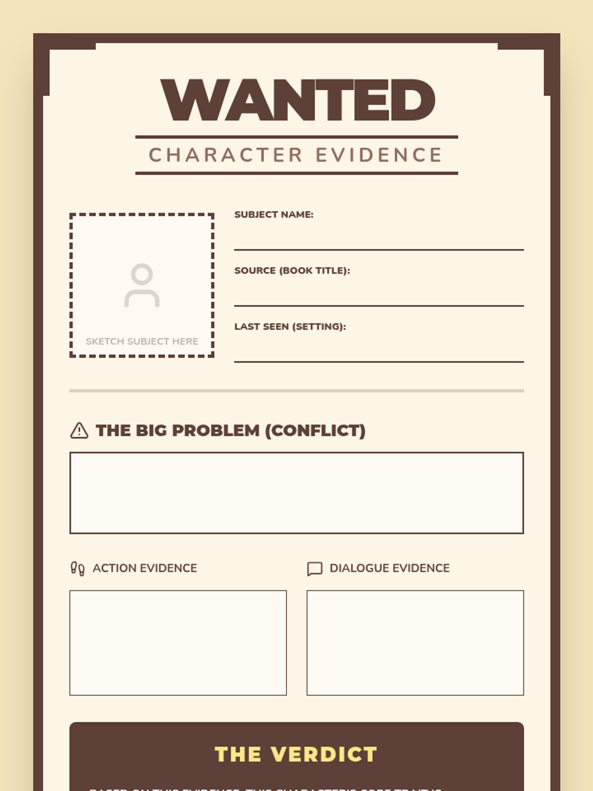 Students analyze the protagonist's reaction to the central conflict in the first book of a series, documenting evidence of core traits.