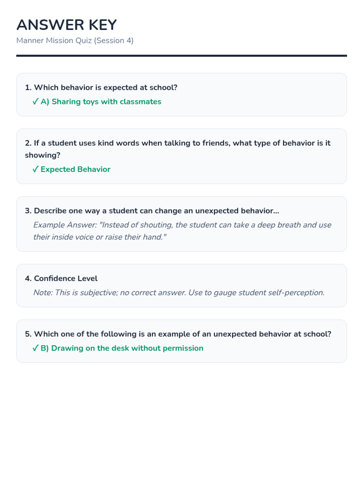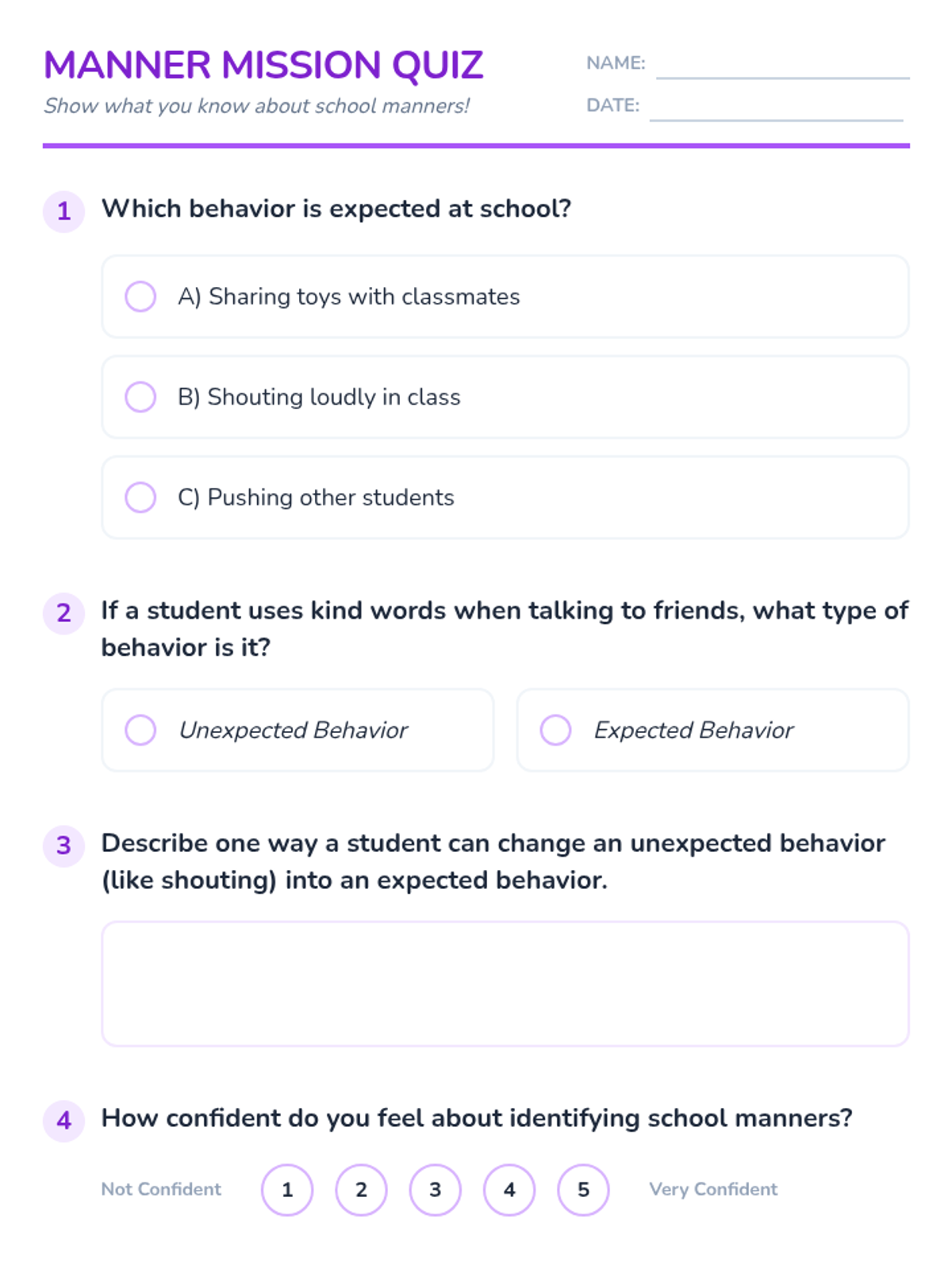 A fast-paced, 10-minute social-emotional learning lesson focused on building self-confidence through self-acceptance and kindness toward others. Students define self-esteem and set immediate goals for personal growth and peer acceptance.