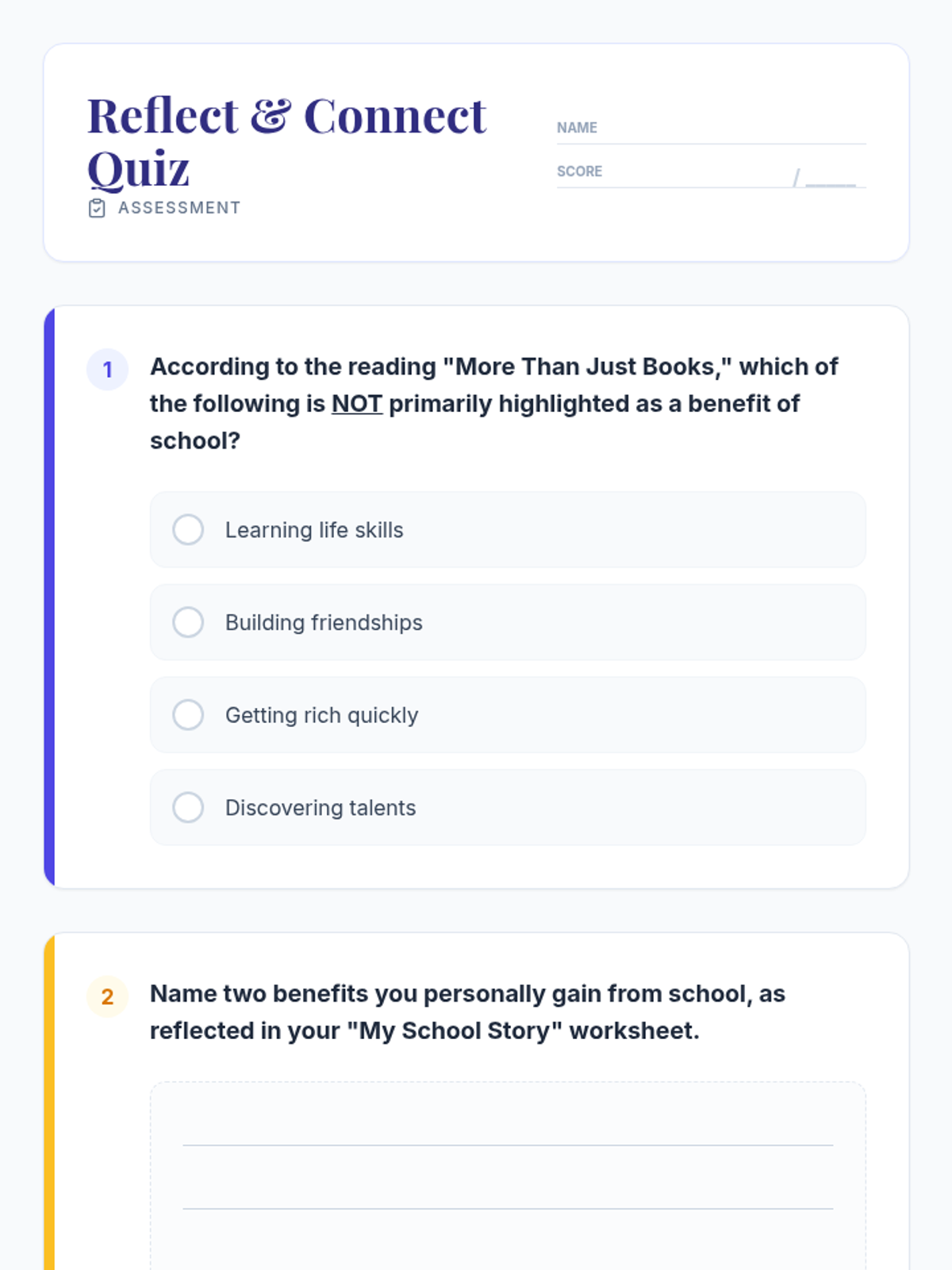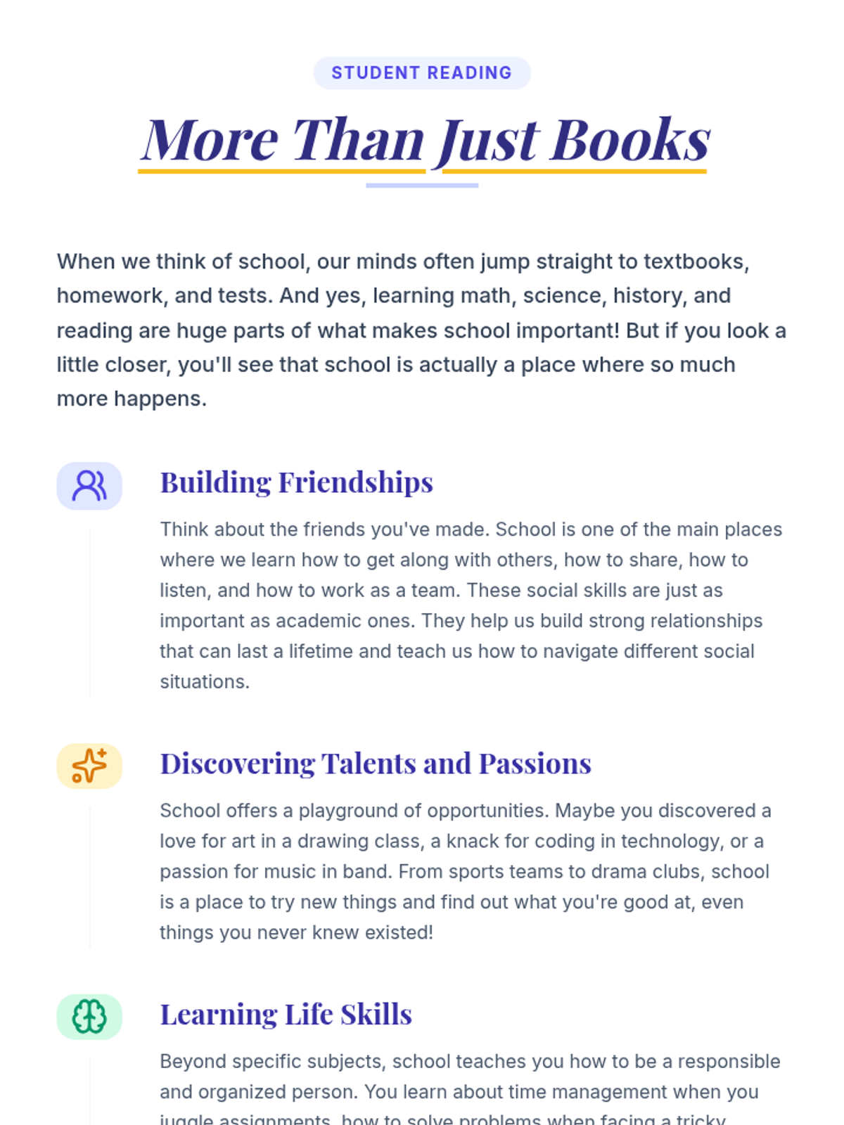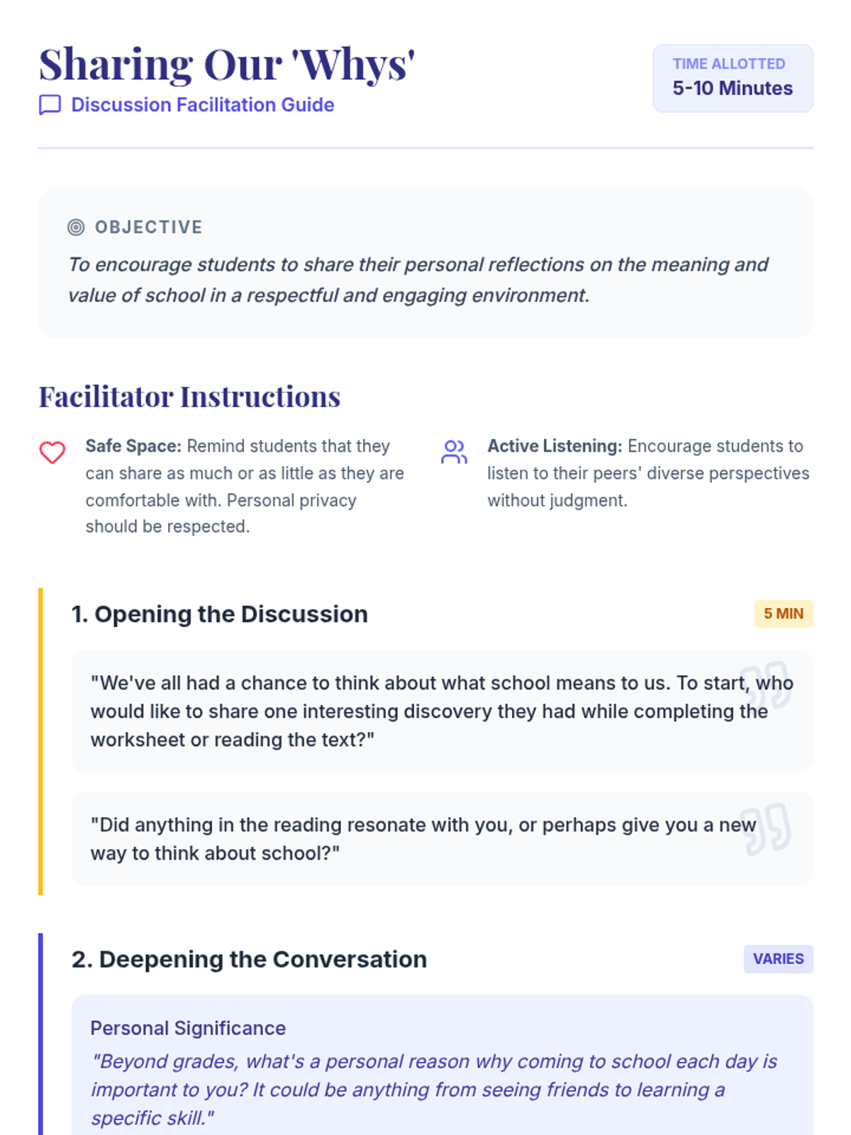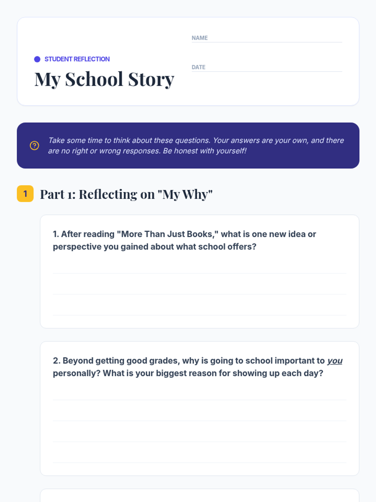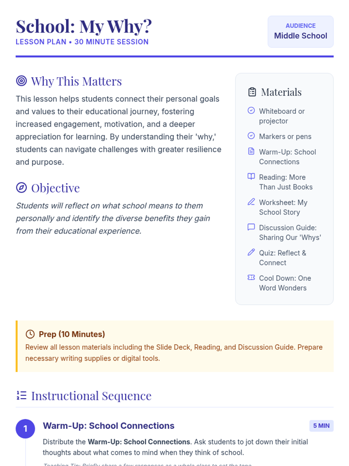 A 30-minute reflective lesson for middle schoolers to explore their personal 'why' for attending school, focusing on diverse benefits beyond core academics.
