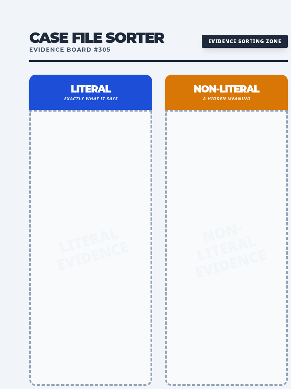 A 45-minute lesson exploring the difference between literal and non-literal language through the lens of ancient myths and classic fables. Students will practice identifying and interpreting figurative expressions within narrative texts.