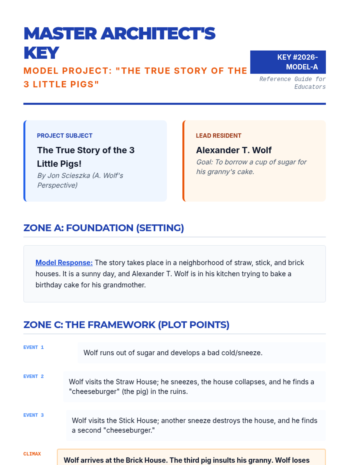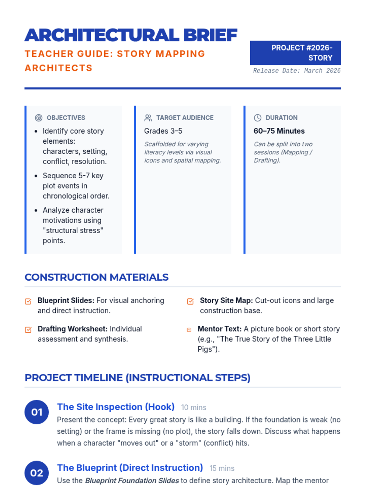 A hands-on literacy lesson where students act as architects to deconstruct and rebuild stories. Using visual and tactile mapping, students identify key story elements, sequence events, and analyze character motivations through the lens of structural design.