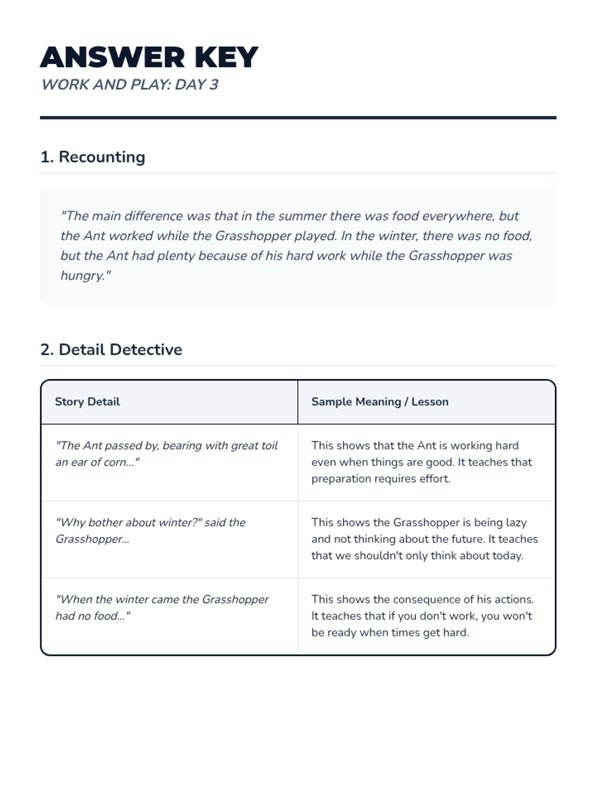 Analyze 'The Ant and the Grasshopper' to see how specific story details and character choices work together to convey a central message.