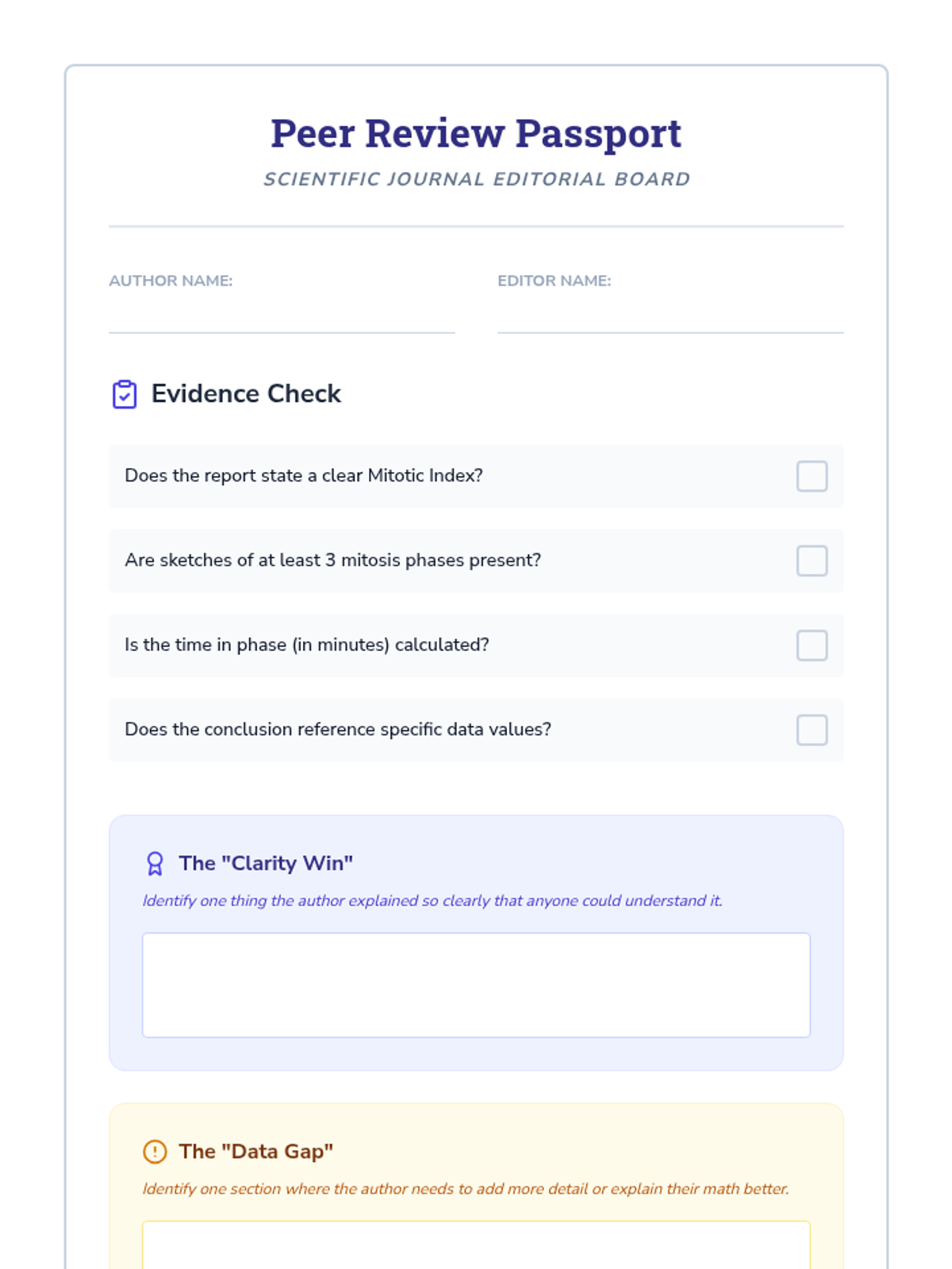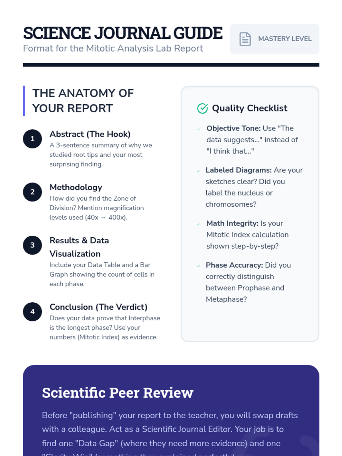 Students synthesize their observations and data into a formal lab report, undergoing a peer review process like scientific journal editors.