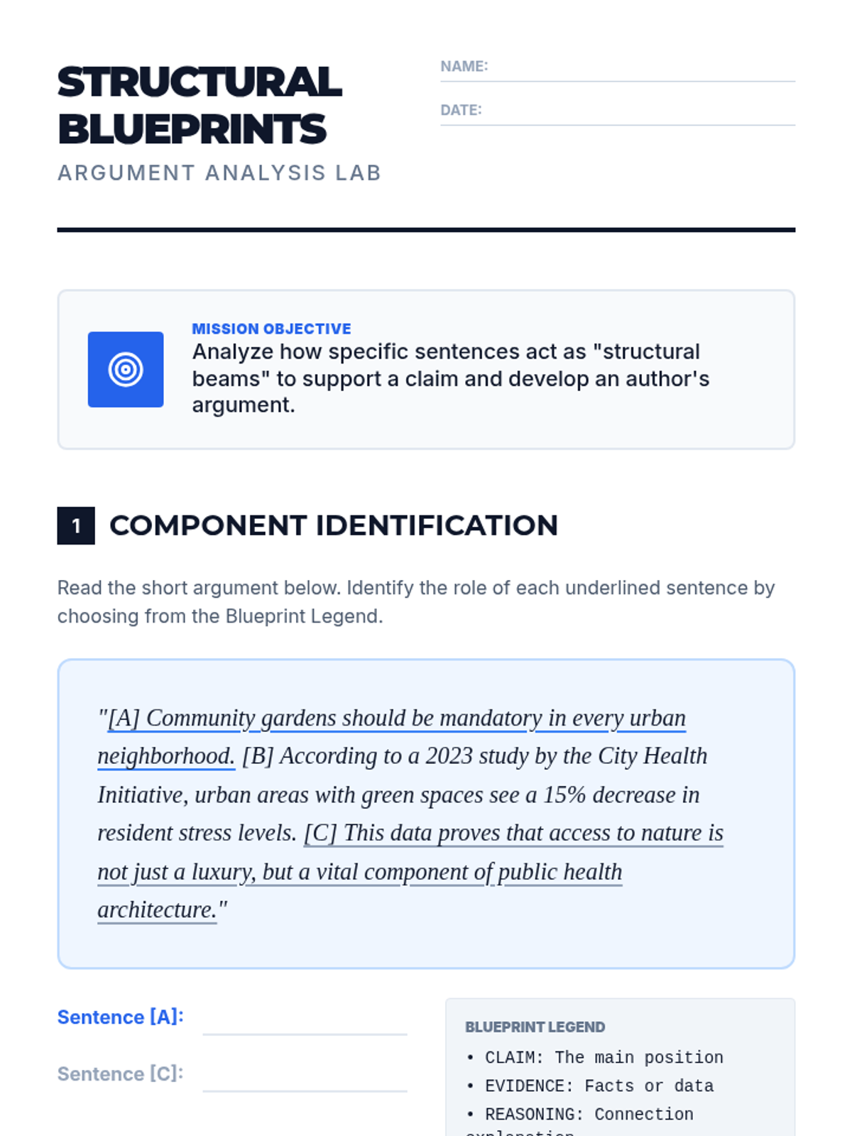 A lesson focused on analyzing how specific parts of a text contribute to the overall structure and the development of an argument through evidence. Students learn to see texts as 'blueprints' where every sentence serves a structural purpose.