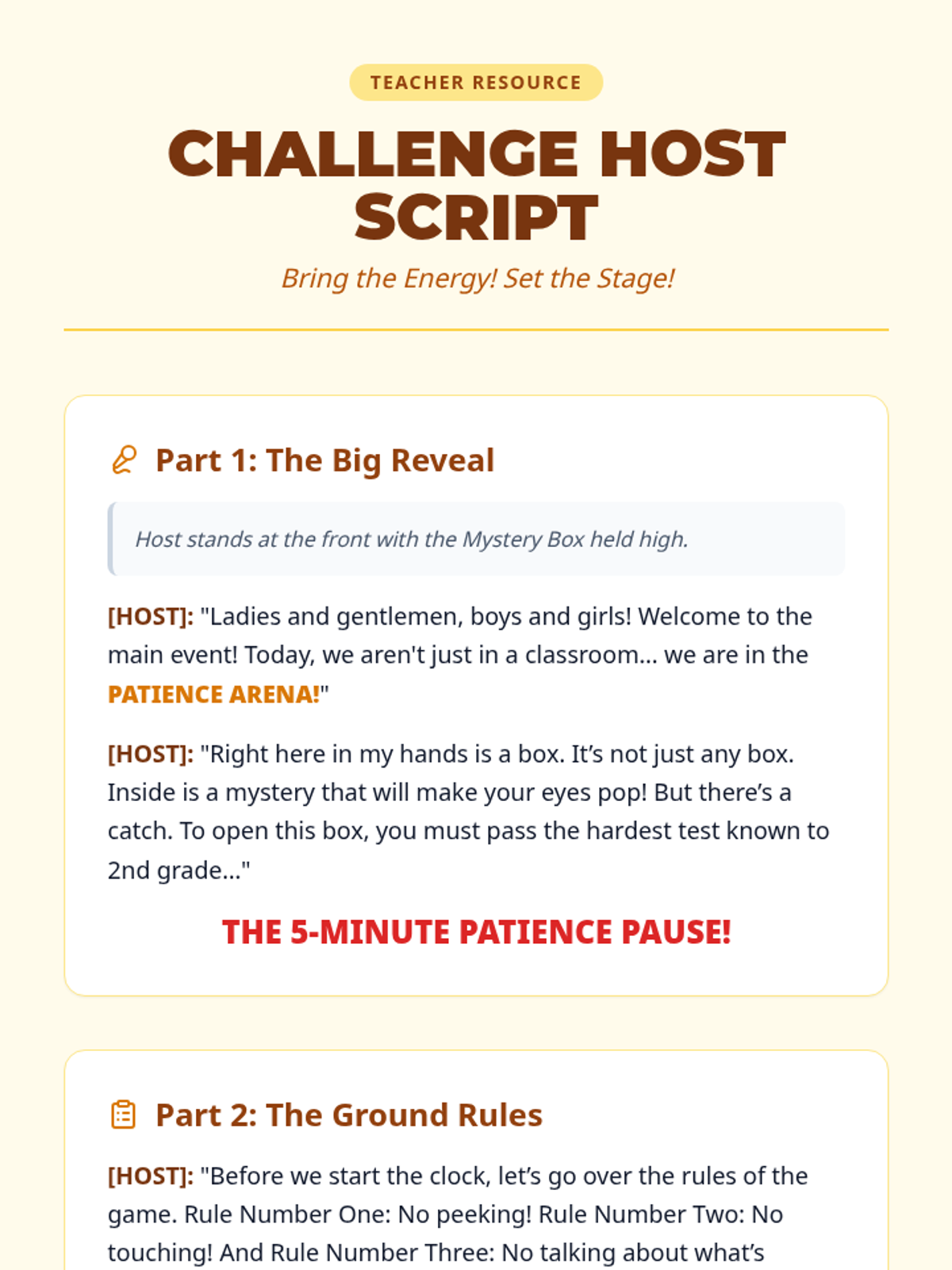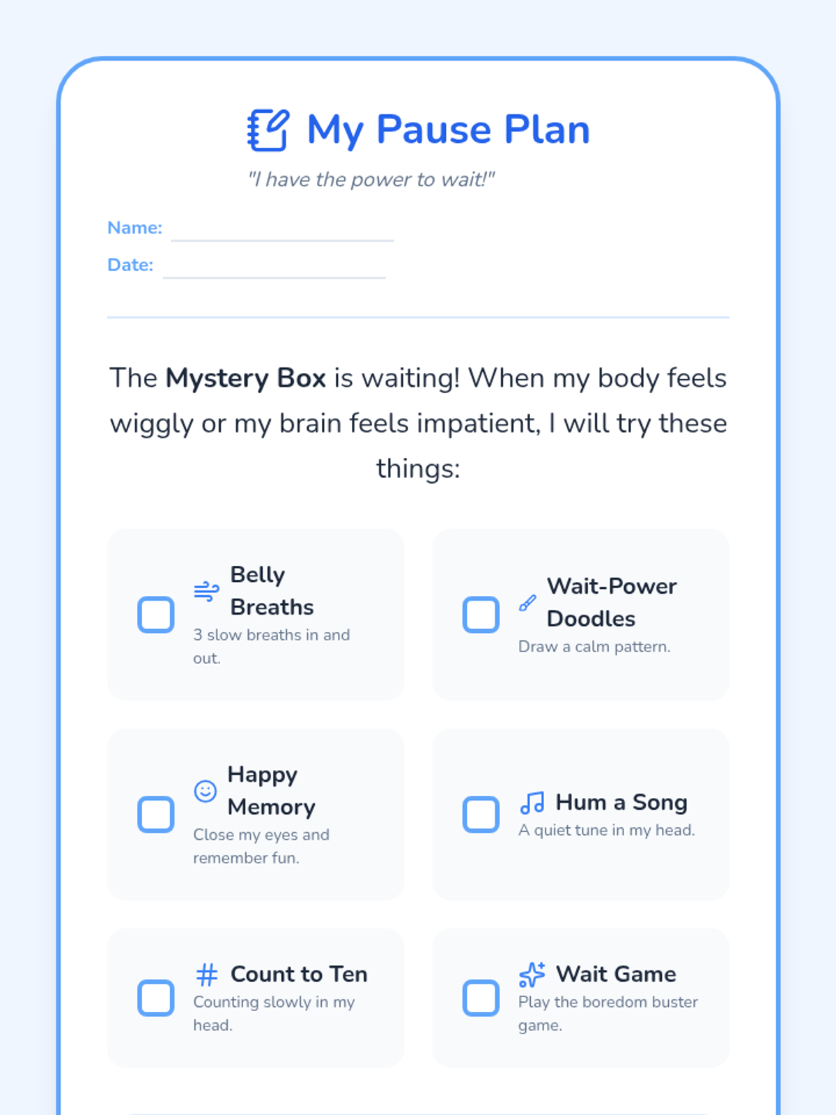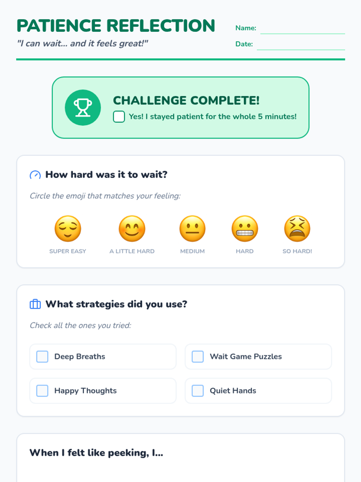A 30-minute social-emotional learning lesson where students practice the 'superpower' of waiting. Students will develop strategies for delayed gratification, test their self-control with a mystery box challenge, and reflect on their emotional journey.