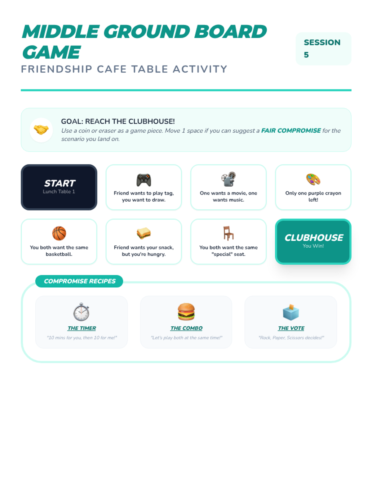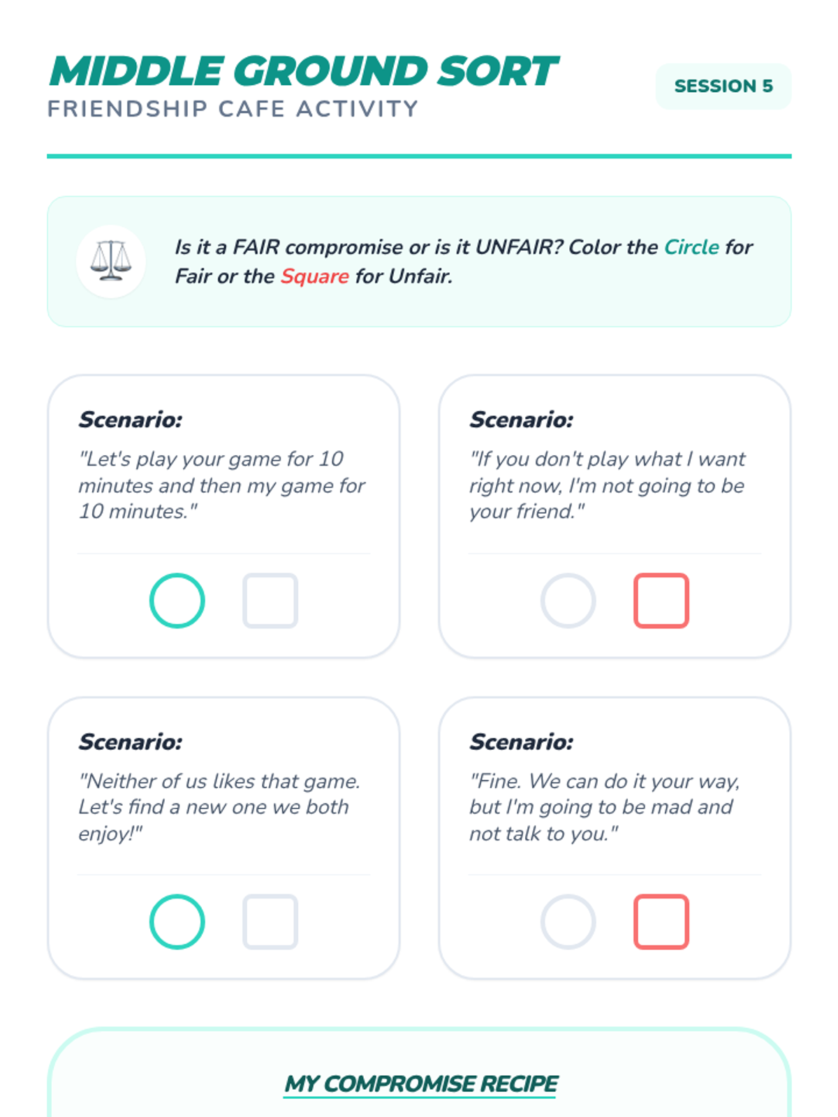 Focusing on compromise and finding the "middle ground" when friends have different ideas for play or activities.