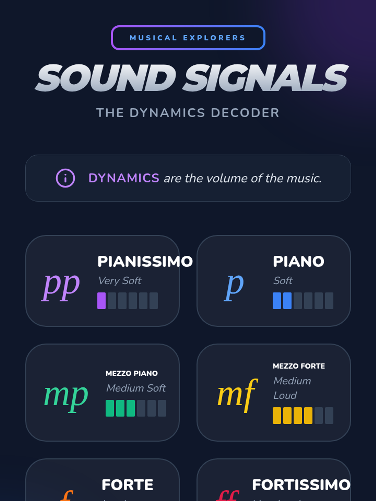 An introduction to the foundational elements of music notation including key signatures, time signatures, and dynamics through the lens of evidence-based analysis. Students learn the 'Look, Listen, Link' framework to connect visual symbols with auditory outcomes.