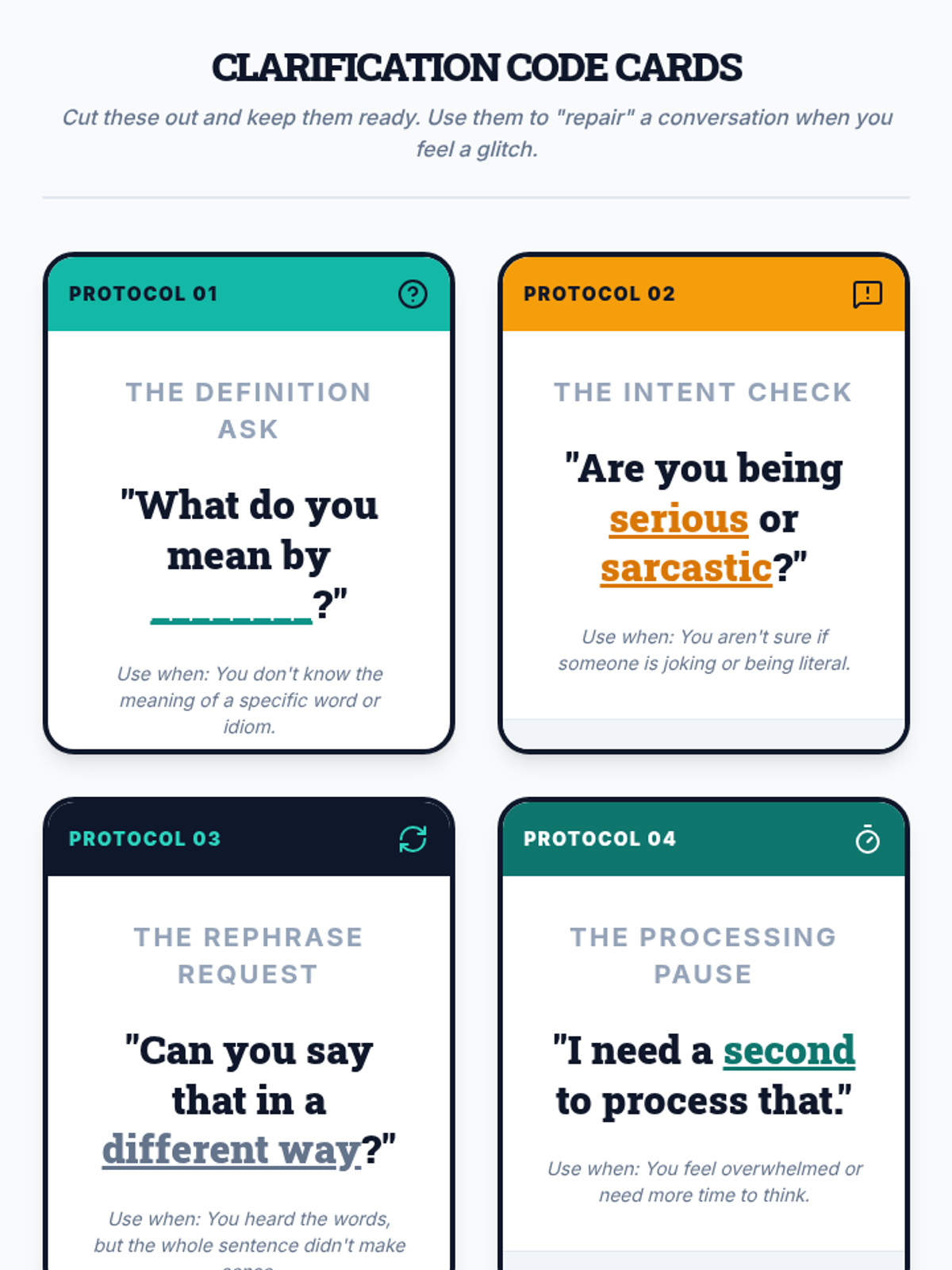 Students practice specific phrases to pause conversation and gain clarity when they encounter misunderstood figurative language.