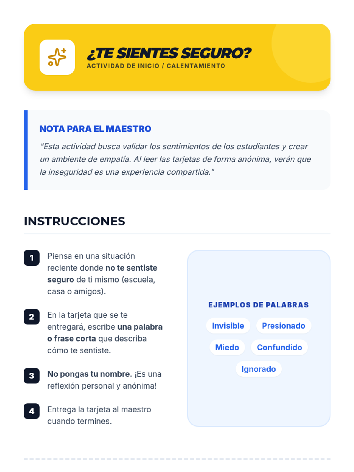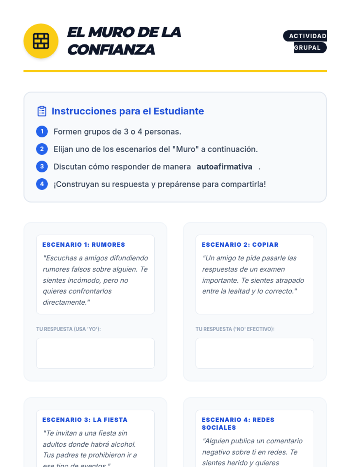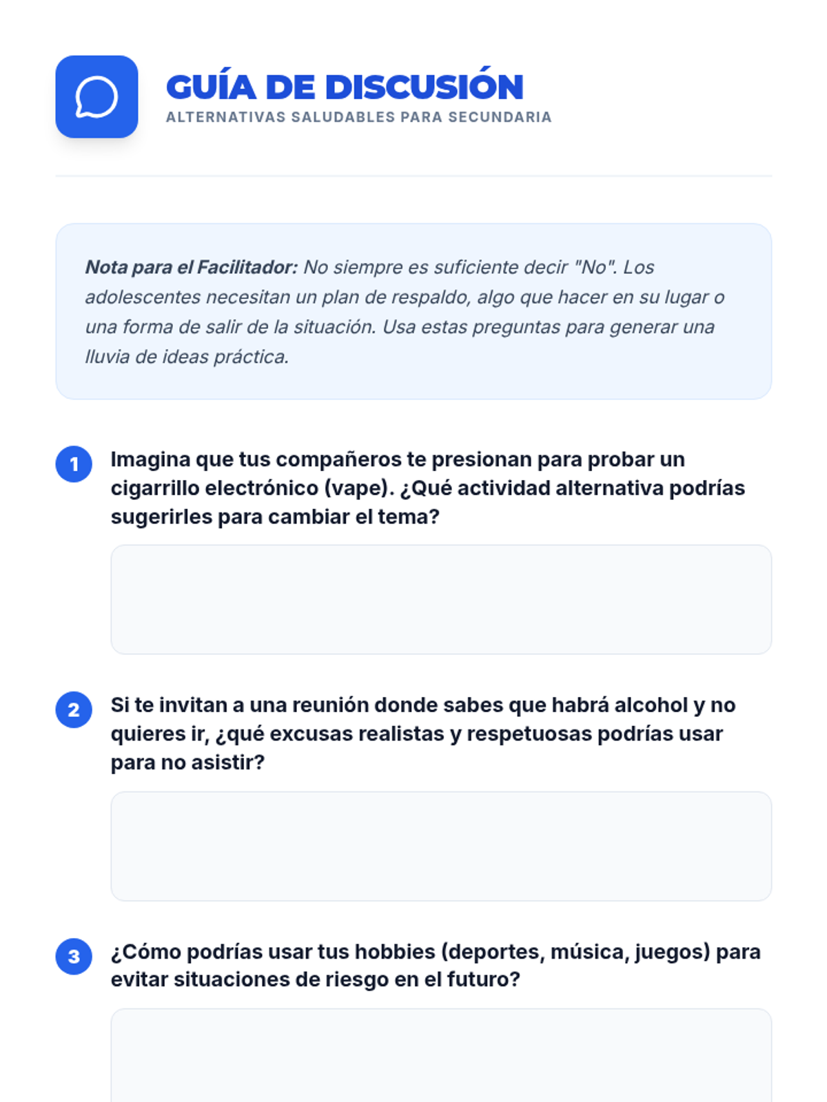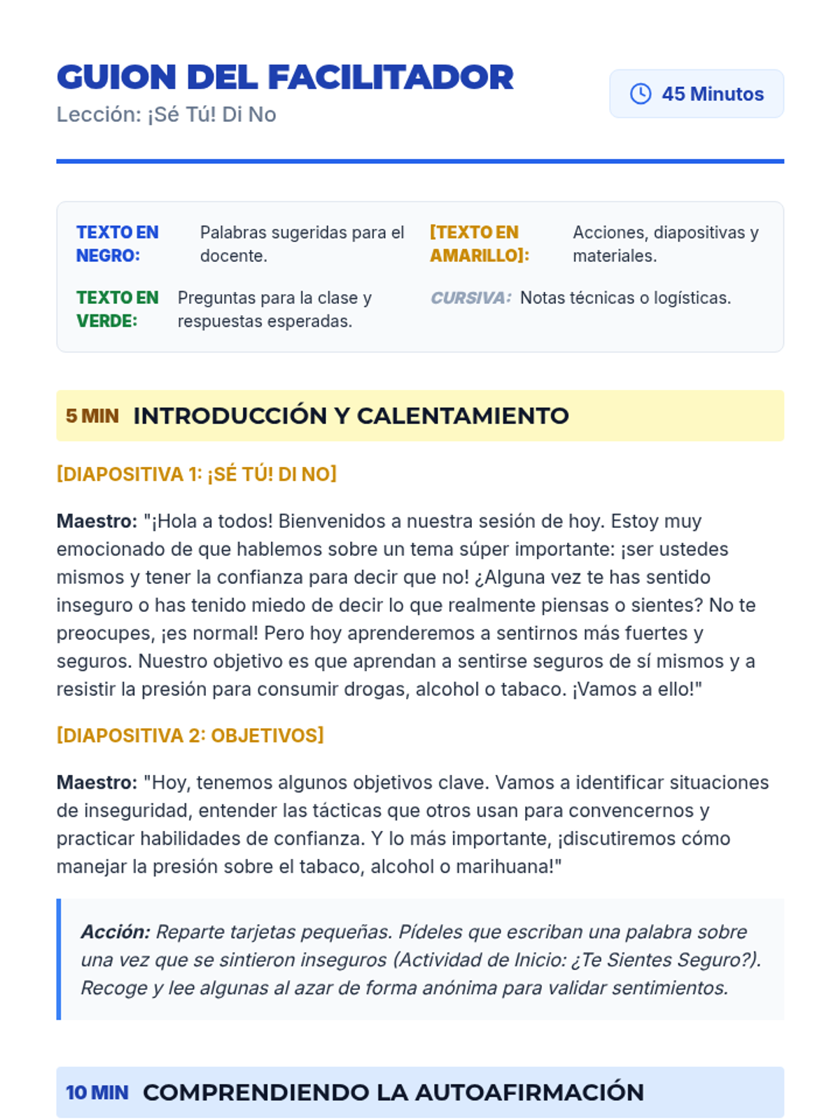 Esta lección empodera a estudiantes de 6º y 7º grado con habilidades de autoafirmación para resistir la presión social y el consumo de drogas. Incluye actividades interactivas, juegos de roles y recursos para eventos feriales.
